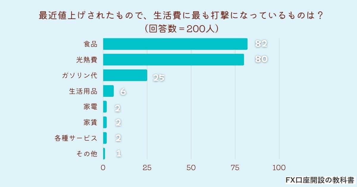 <調査結果>最近値上げされたもので、生活費に最も打撃になっているものは?1位『食品』!