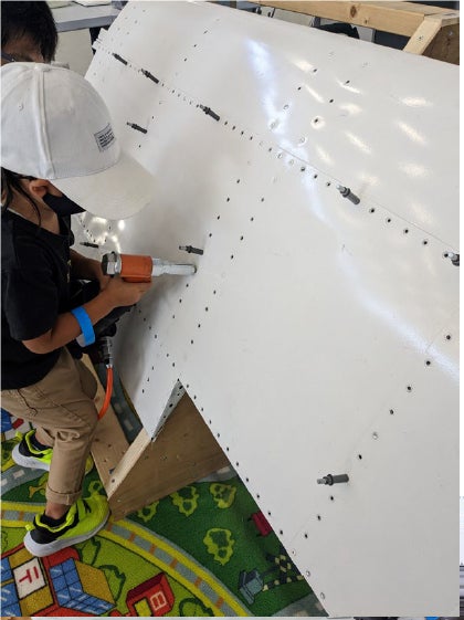 空飛ぶクルマの翼づくり体験、コックピットモック(木製)搭乗体験〔テトラ・アビエーション(株)〕