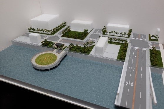 ・空飛ぶクルマ専用の離着陸場(バーティポート)模型を展示