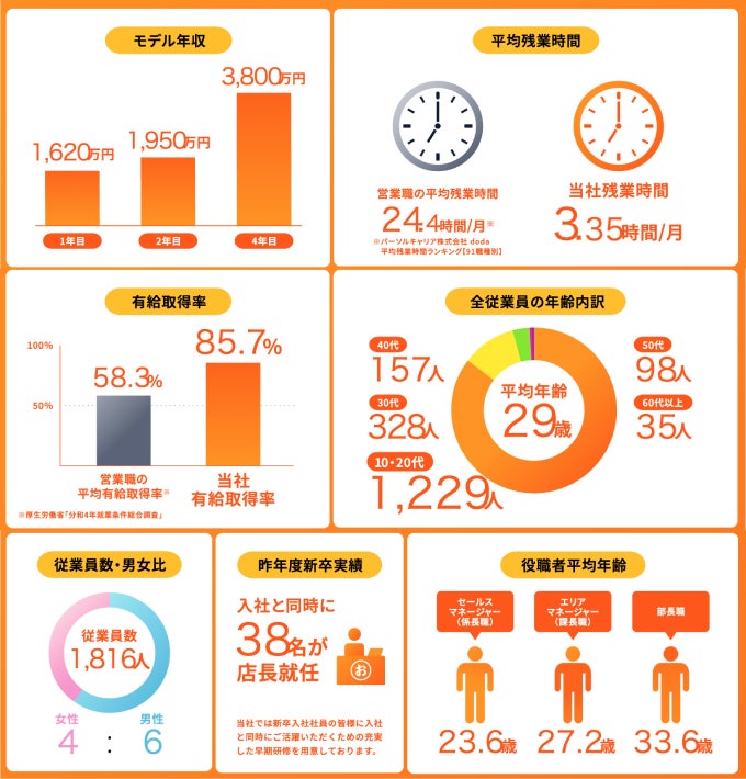 さらに、優秀な成績を収めた方には、入社と同時に店長の役職を与えられ、若いうちからマネジメントにも挑戦できる環境が整っています。
