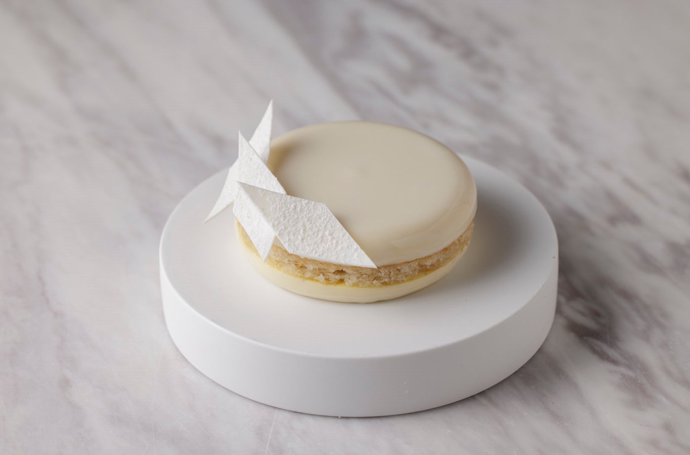 数センチの厚さの中に、バニラとアーモンドの様々な食感と味わいが絡み見合い、デリケートに重なる合う味覚のバランスをお愉しみ下さい。