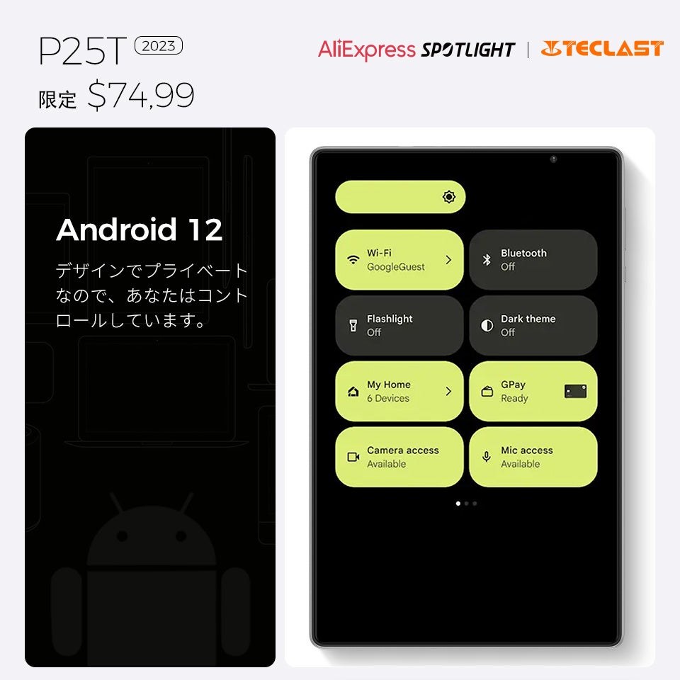 よりカラプルに!Teclastアップタブレット「P25T」初売り、約1万円の歴史最安値で購入できます。