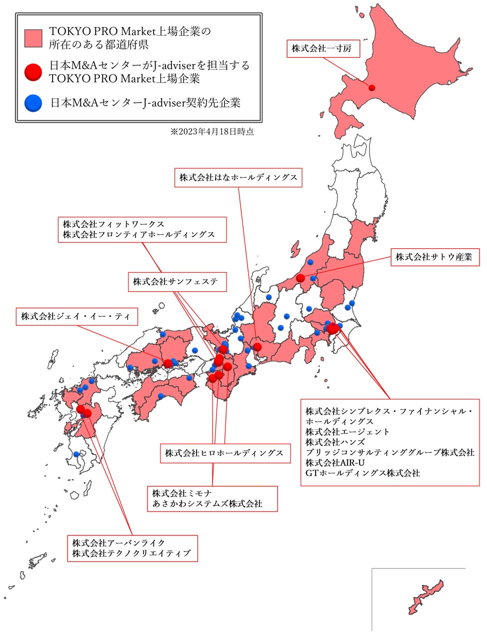 日本M&Aセンターでは、企業成長のさらなる促進・円滑な事業承継・一般市場への上場に向けた体制整備を目的にTOKYO PRO Marketへの上場支援に取り組んでおり、以下既存上場企業含め全国で