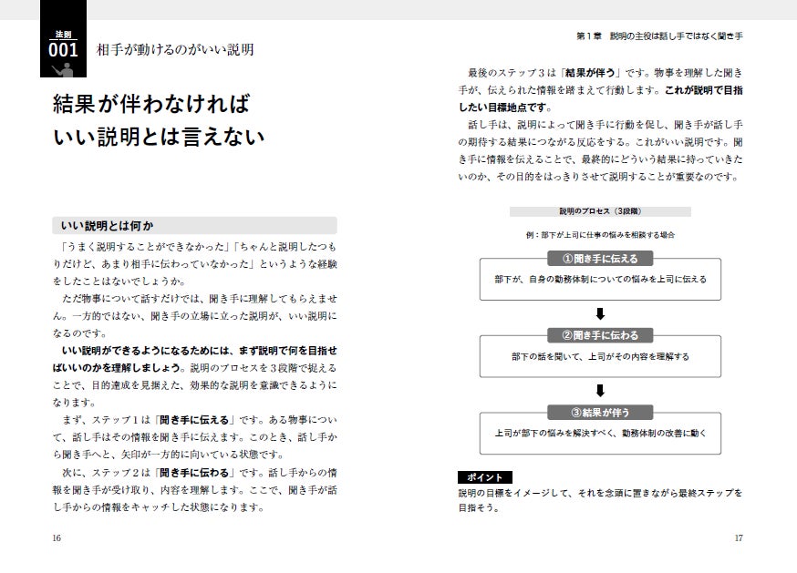 「説明が長い」「何を言っているのかわからない」「伝えたいことが今一つ伝わらない」といった悩みを持つビジネスパーソンに向けて、わかりやすく伝わりやすくなる簡潔化、箇条書き、結論ありきなど説明の技術を100の法則にまとめ、解説していきます。