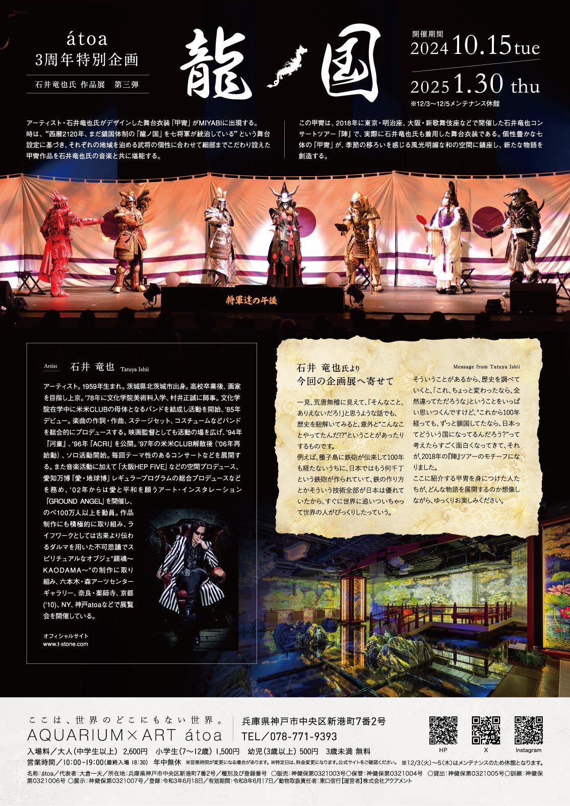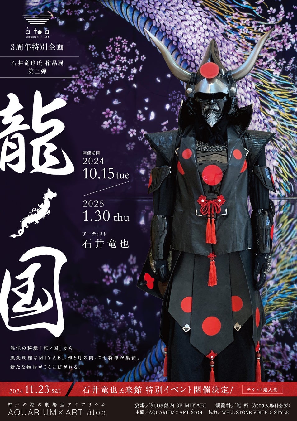 AQUARIUM×ART átoa(神戸市中央区、以下アトア)では、アーティスト石井竜也氏による作品展第三弾として、企画展「龍ノ国」を2024年10月15日(火曜)から2025年1月30日(木曜)まで開催します。