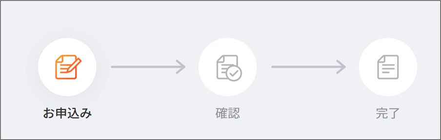 eオリコからのお申込は3ステップで完結。(申込→確認→完了)までカンタンにお手続きいただけます。