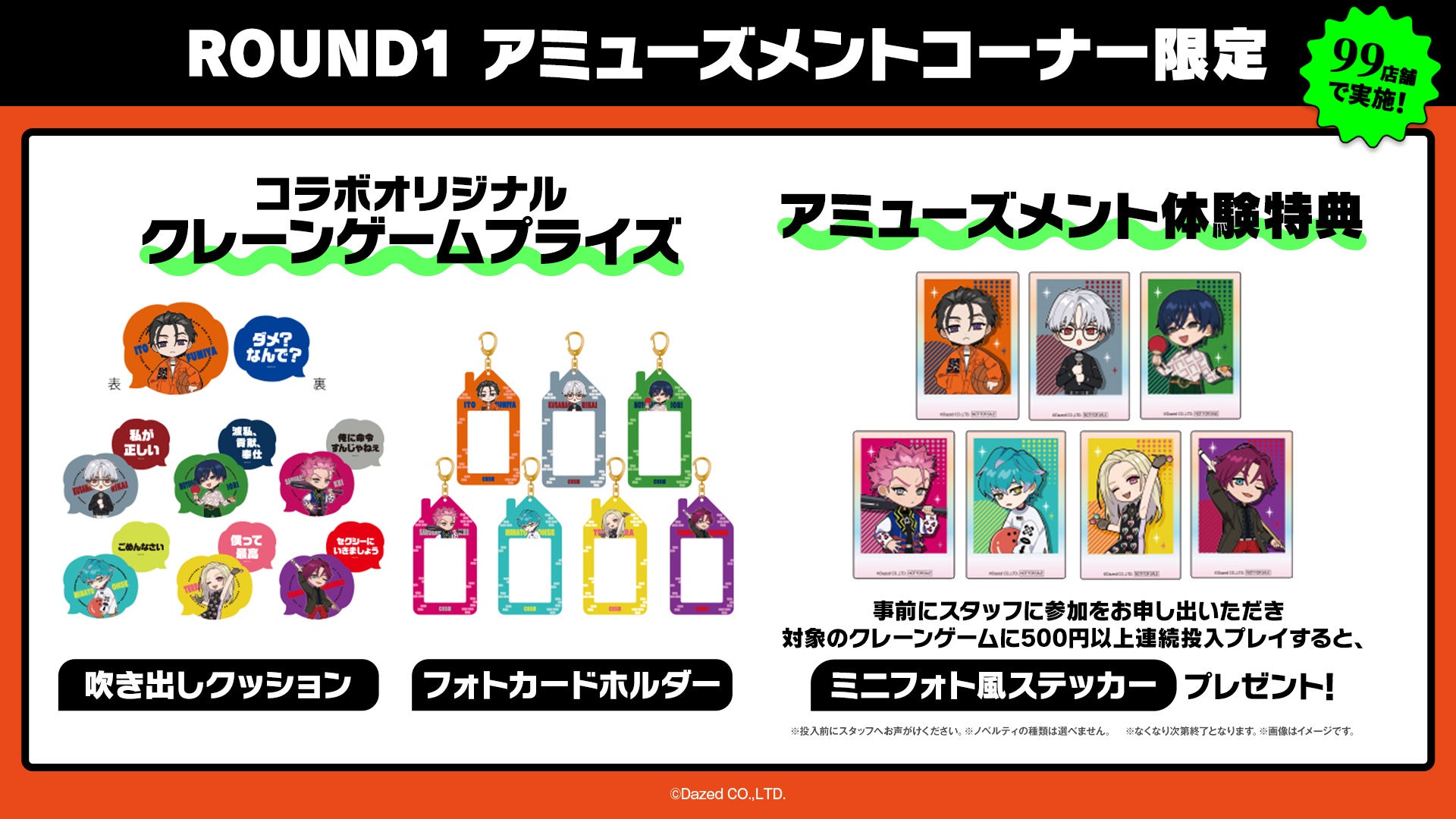 7月4日(金)より全国のROUND1 99店舗にて、『カリスマ』の新作プライズとして、吹き出しクッションとフォトカードホルダーを展開いたします。また、対象のクレーンゲームに500円以上連続投入プレイをすると、コラボオリジナルステッカーをノベルティとしてプレゼントいたします。