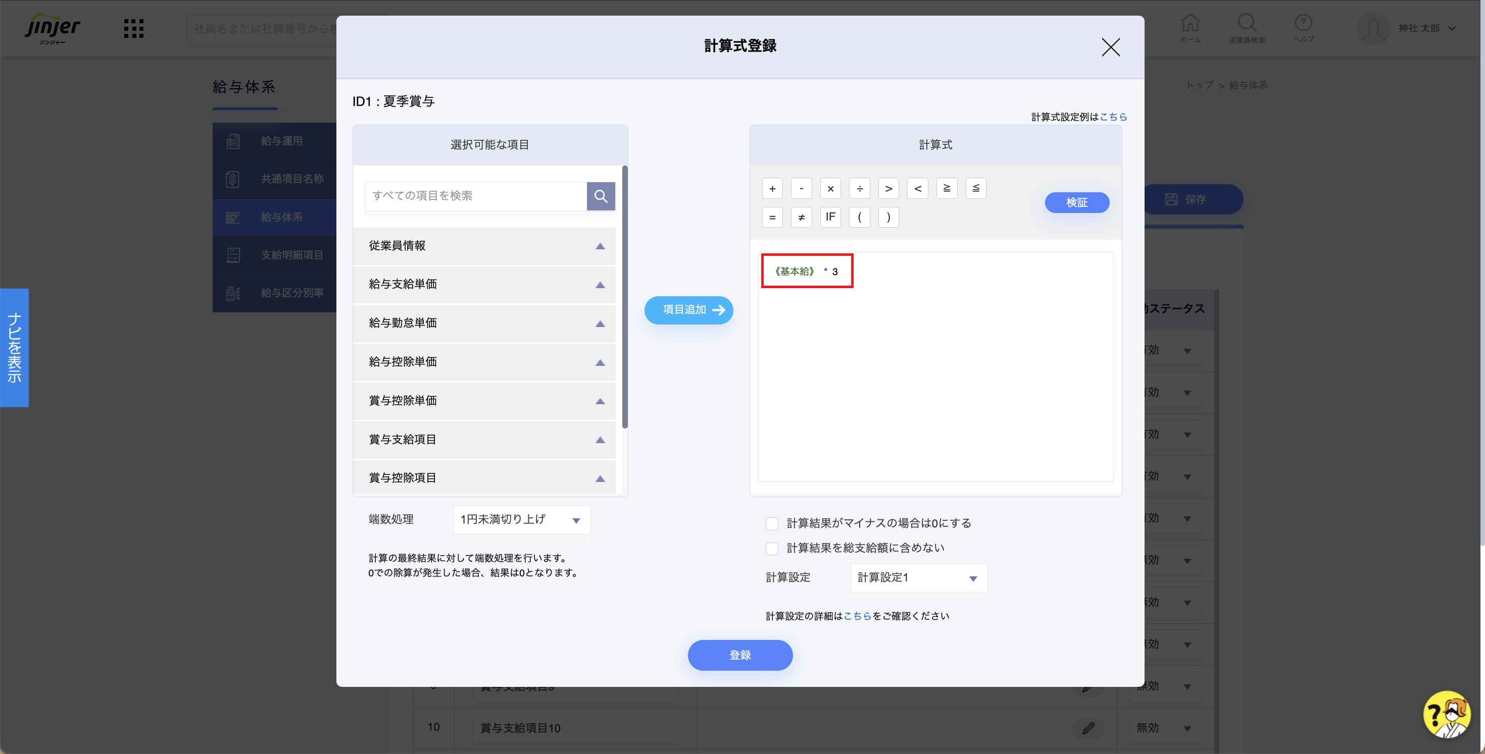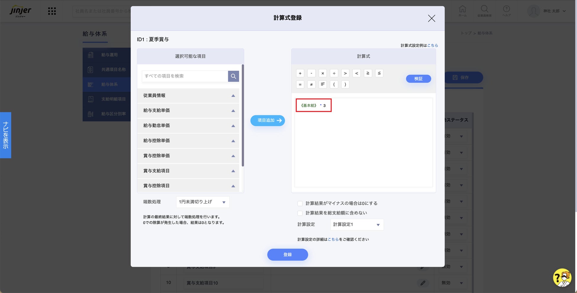 各企業の賞与制度に応じて、賞与額の計算式を組むことができます。