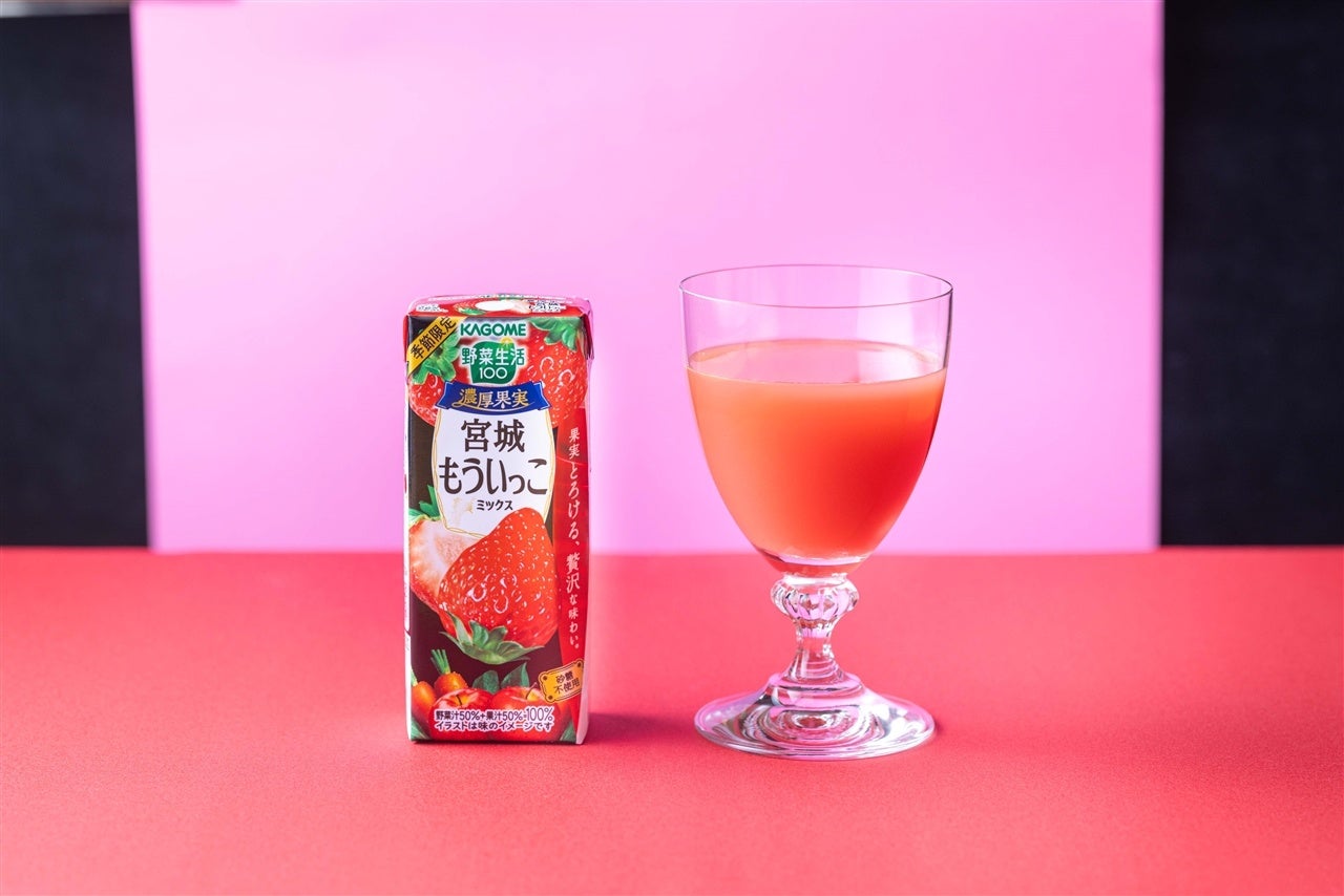 「野菜生活100 濃厚果実 宮城もういっこミックス」は、糖度と酸味のバランスが良く、すっきりとした甘さが特徴の宮城県産「もういっこ」の味わいに仕上げた野菜&果実100%ジュースです。「もういっこ」は宮城県生まれの品種のいちごです。果実のピューレーを贅沢に使った濃厚な味わいで、おやつ・デザートタイムやリラックスシーンにおすすめです。