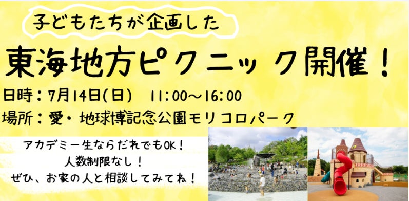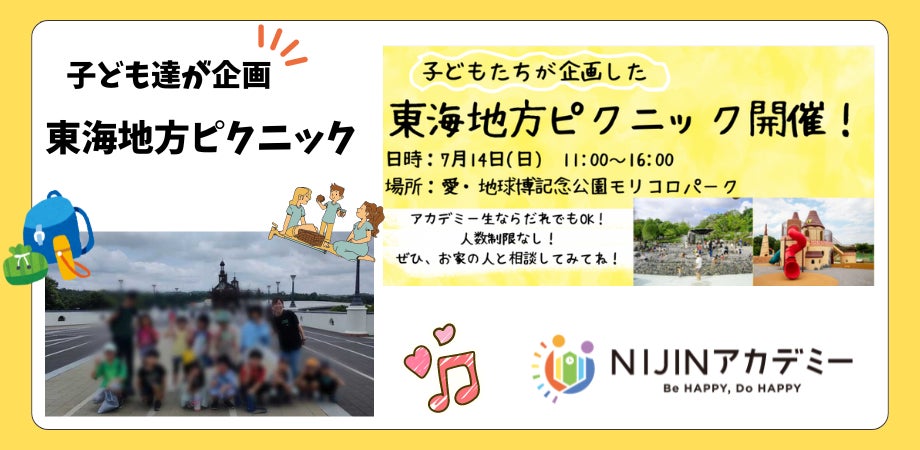 不登校の小中学生を対象としたオルタナティブスクール「NIJINアカデミー」(東京都江東区、代表取締役 星野達郎)では、2024年7月14日(日)にNIJINアカデミー生が主催のオフラインイベント「東海地方ピクニック」(愛知県)を開催しました。