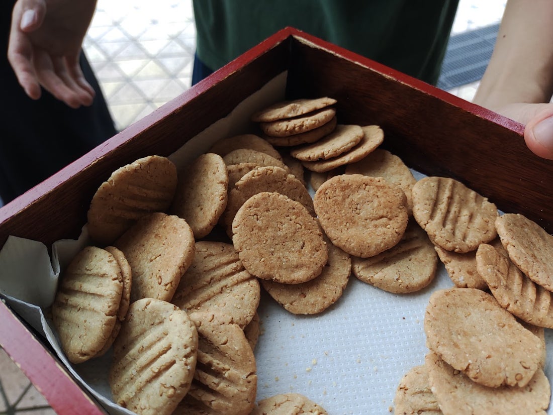 11時に集合をし、まずは昼食です。地球市民交流センターでは、中学生の一人が事前にアレルギーの有無を確認し、手作りのクッキーを差し入れ、配って振る舞う様子が見られました。