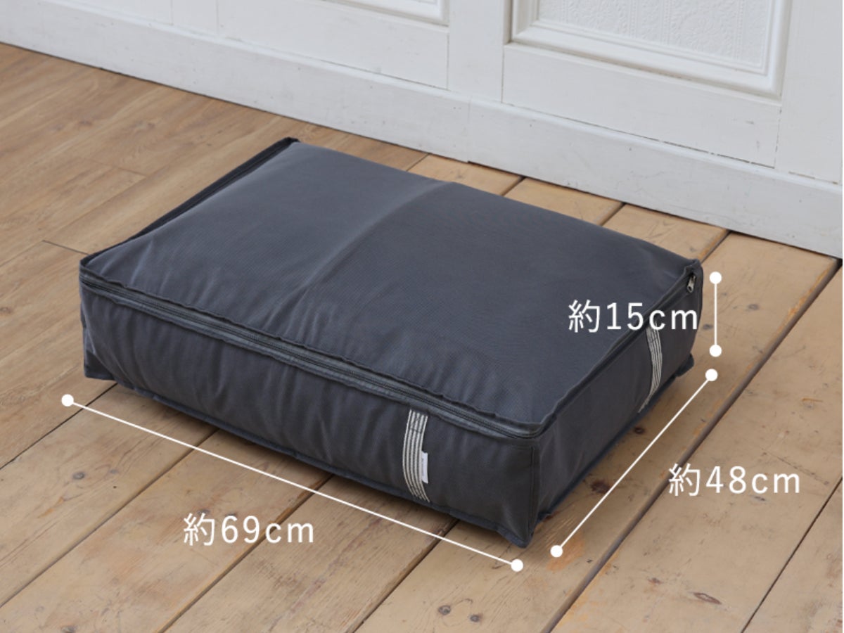 掃除機もいらず、ぎゅっと押さえるだけでコンパクトにできる布団収納袋が、衣替えの味方です。