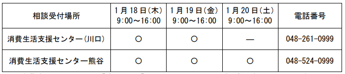 消費生活総合センター Tel 048-645-3421 Fax 048-643-2247
