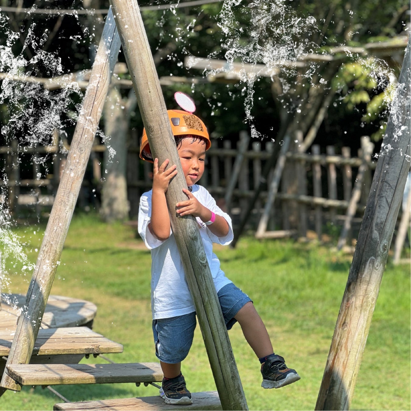 本イベントでは、アスレチック「アッパレ!戦国大冒険!」のキッズ向け「童コース」に参加する子どもたちを対象に、水に濡れることで色が変わる“ポイ”をつけたヘルメットを装着しアスレチックに挑戦いただきます。高さ8mまで吹き上がる水大砲から“ポイ”を濡らさずにアスレチックを攻略するウォーターイベント『スプラッシュアスレチックからポイを守りきれ!』がパワーアップし、四方八方から狙ってくる水鉄砲が追加!水しぶきに囲まれる中ヘルメットにつけた“ポイ”を守り切ることができた方には、「クレヨンしんちゃんアドベンチャーパーク」夏限定のオリジナルシールをプレゼントいたします!びしょ濡れアスレチック体験で、子どもが主役の夏休みを最後まで楽しもう!