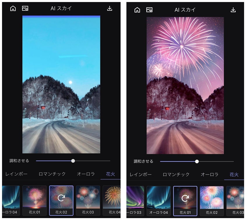・写真の空を美しく調整したり、別の空に置き換えることができます。