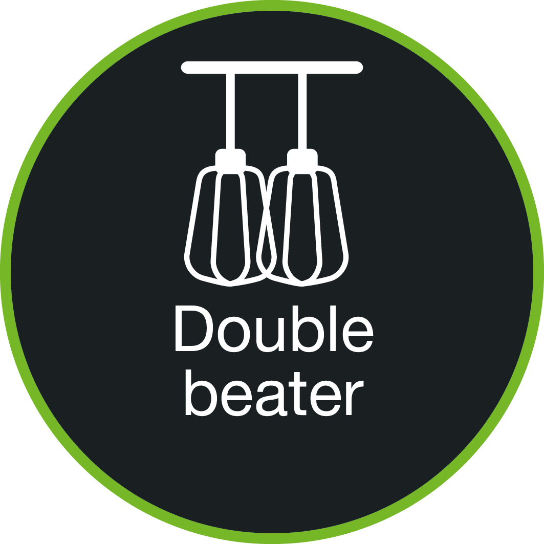 新アタッチメントの「ダブルビーター」を使えば、ケーキやパンケーキなどの軽い生地もふんわりと仕上がり、生クリームは+35%も速くホイップを泡立てることができます(*4)。