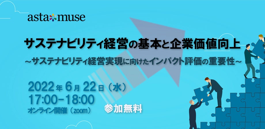 6月22日(水)17:00-18:00 ウェビナー開催!「サステナビリティ経営の基本と企業価値向上~サステナビリティ経営実現に向けたインパクト評価の重要性~」
