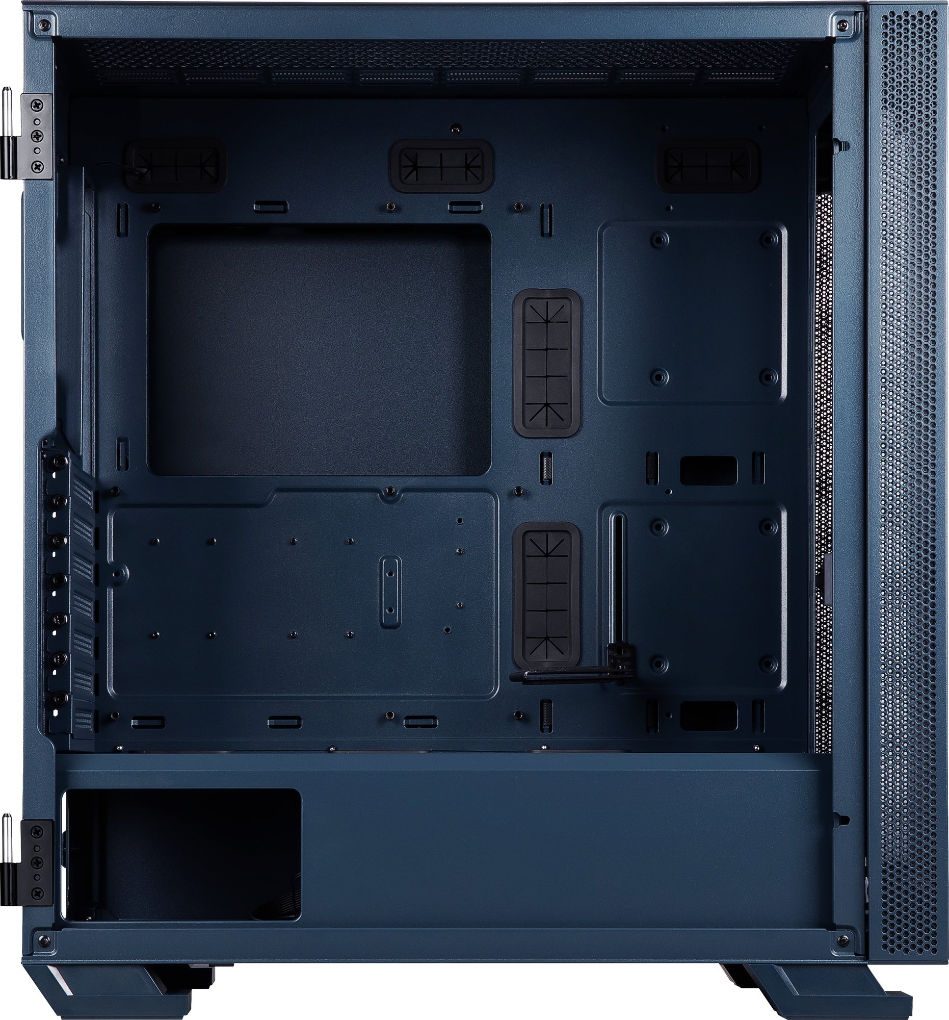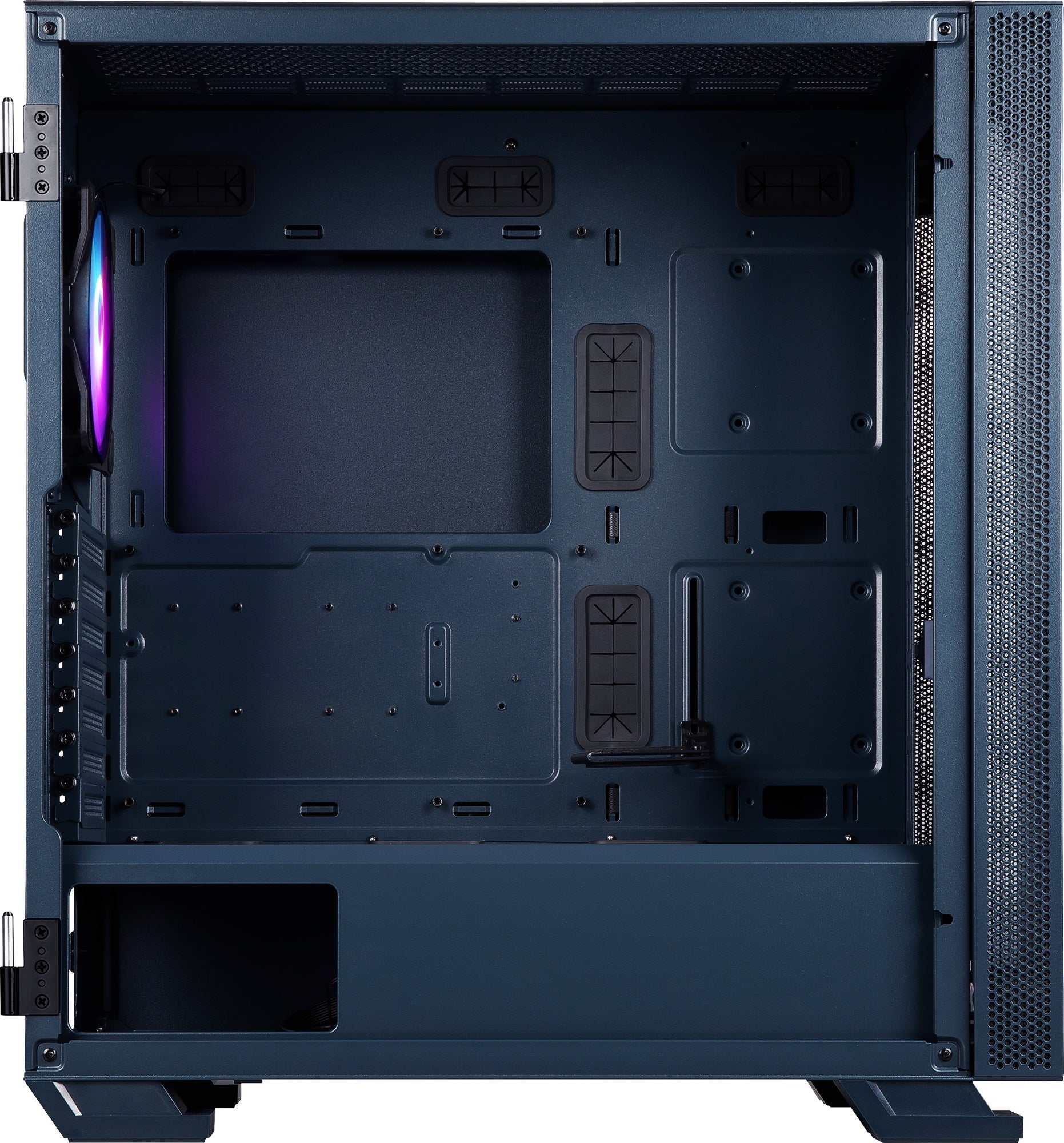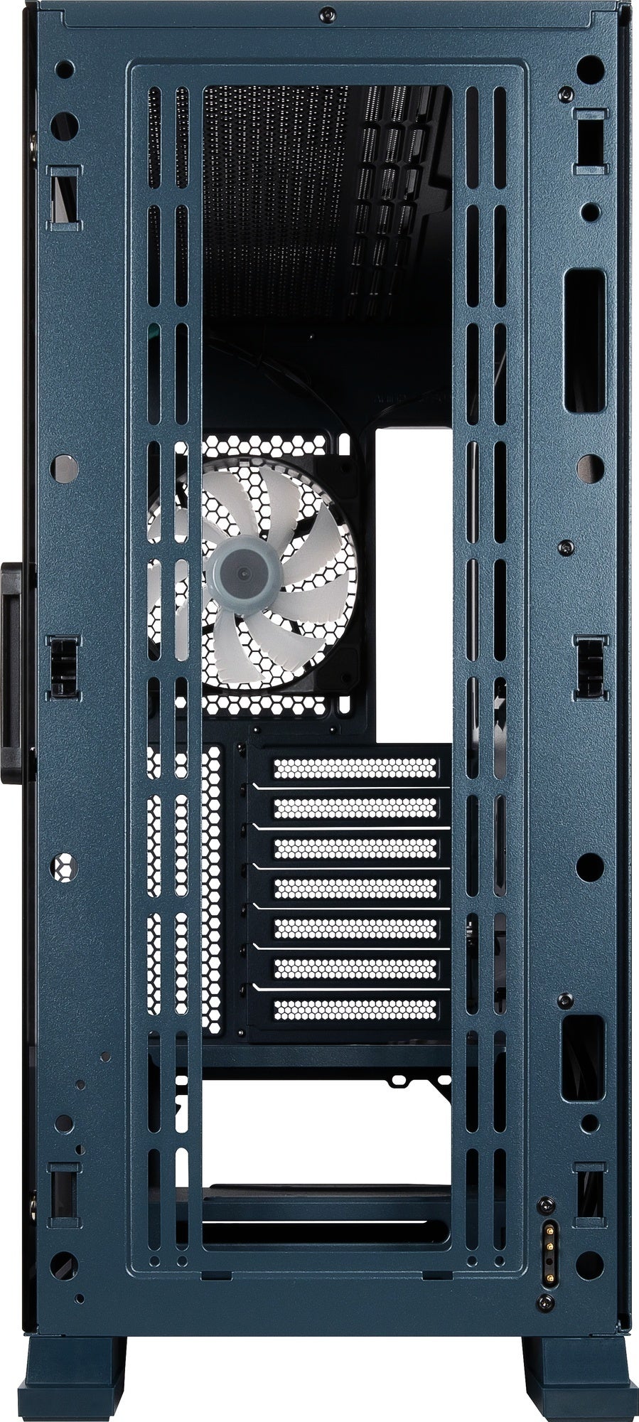 トップとフロントには、最大360mmサイズの水冷ラジエーターが取り付け可能。背面にアドレサブルRGBファンを標準装備するほか、最大7基のケースファンの取り付けに対応しており、エアフローに優れた設計を採用しています。