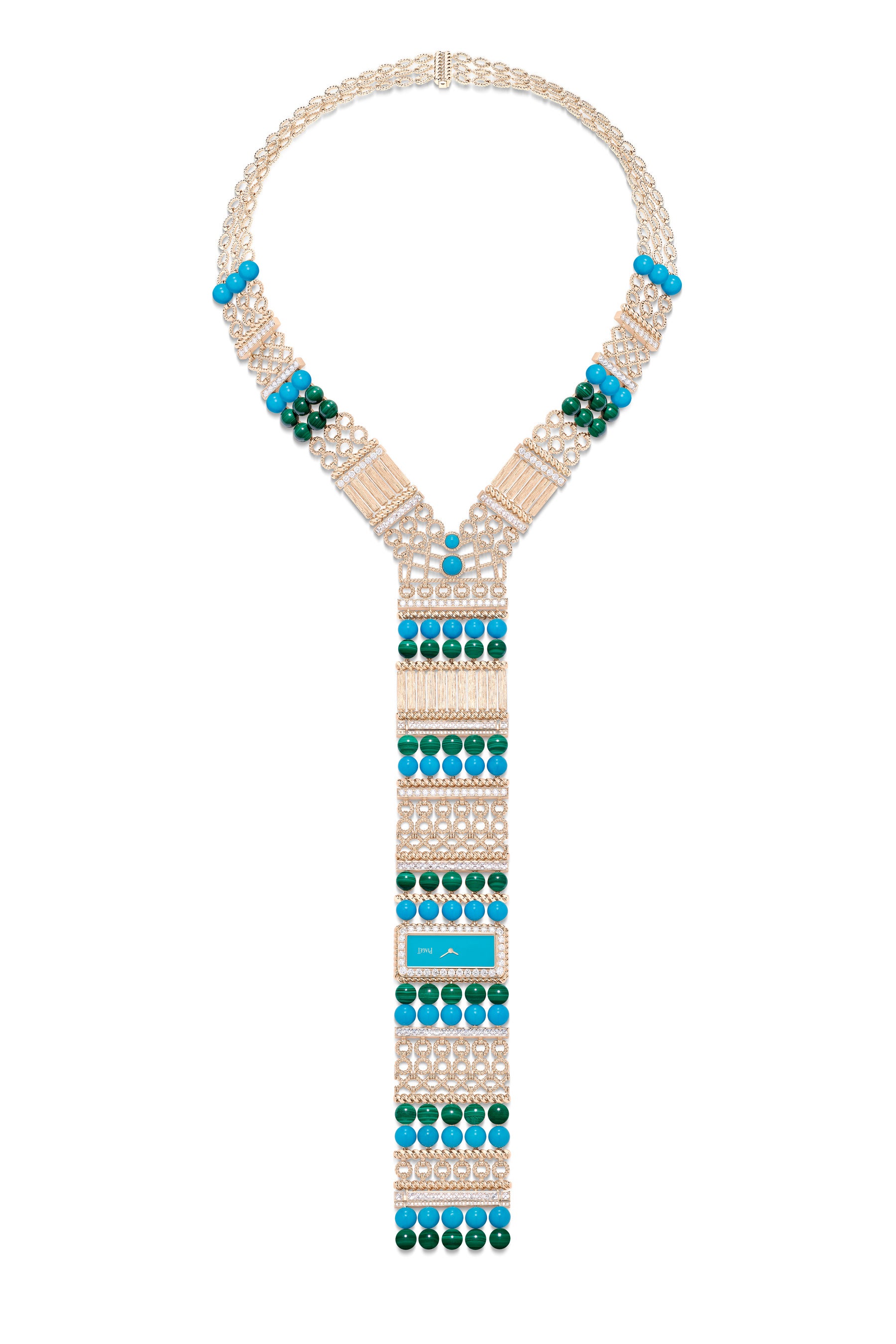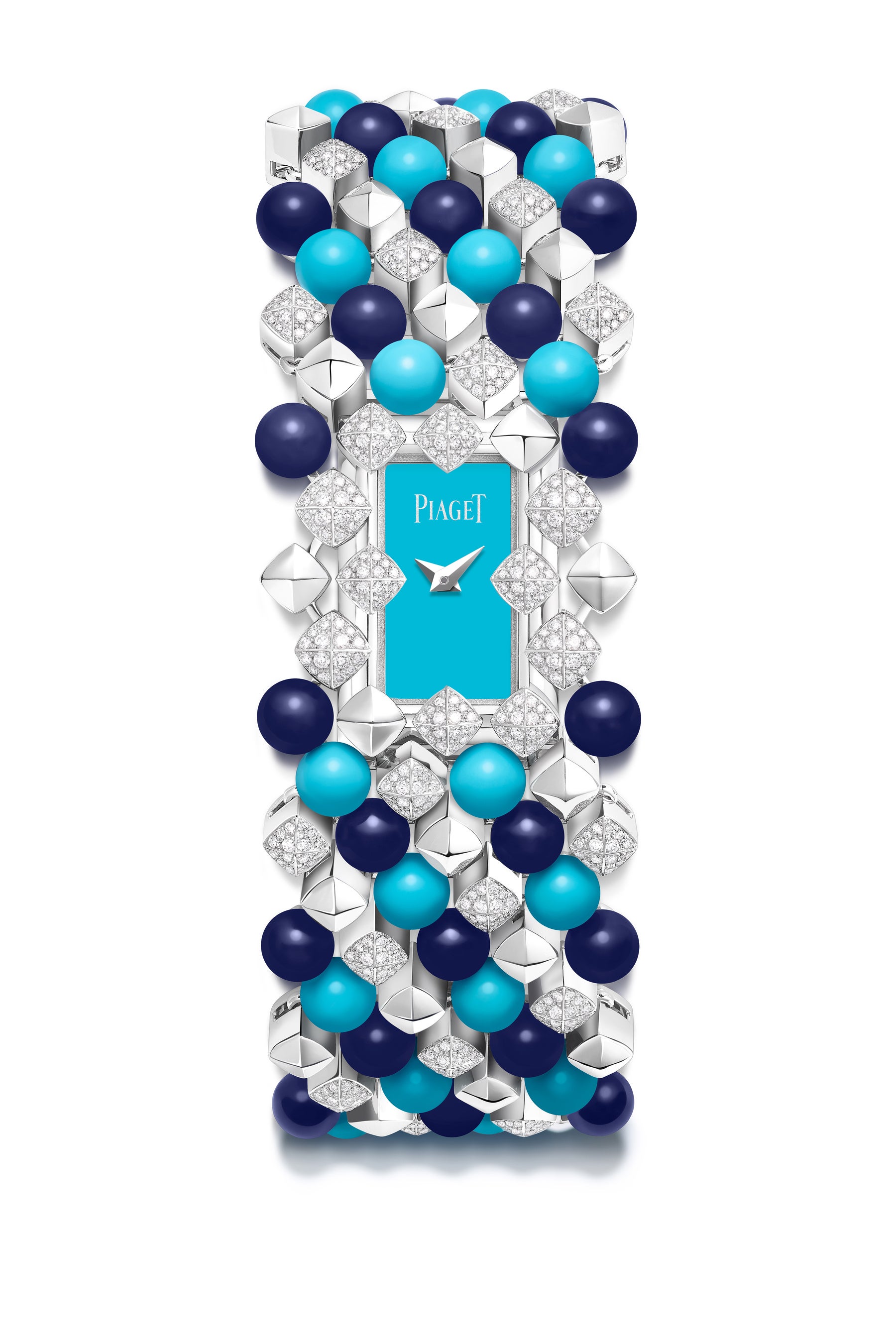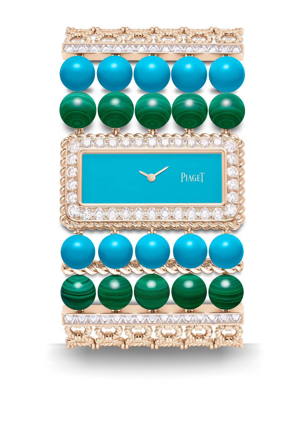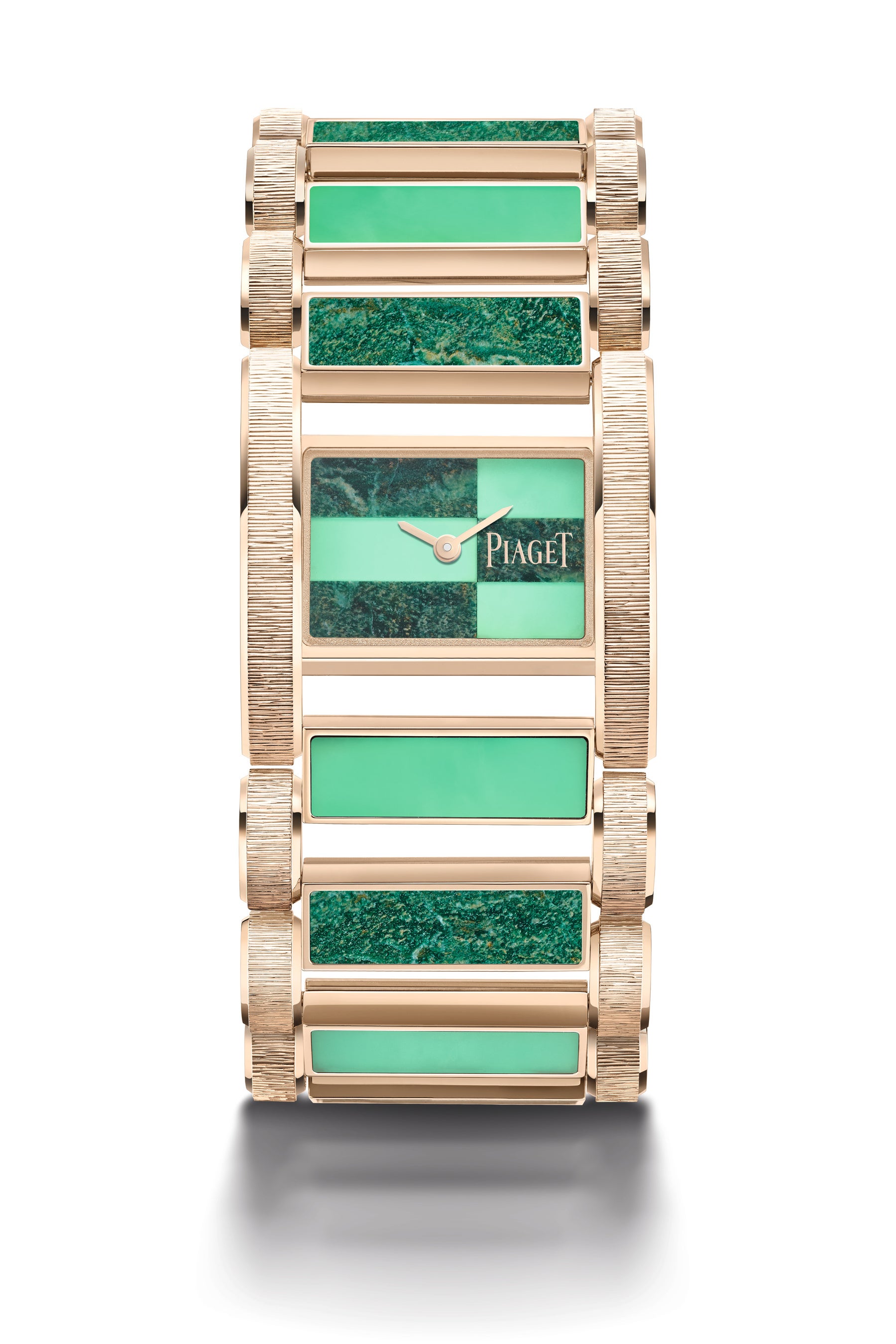 1963年、ピアジェが果敢にもラピスラズリ、ターコイズ、マラカイト、タイガーズアイなどの鮮やかなオーナメンタルストーンでウォッチの文字盤を装って以来、メゾンは、エクストラレガンザの重要な要素である色彩に向けた独創的なアプローチで有名になりました。大胆な色彩、ポップアート風のマザーオブパールとオニキス、あるいはラピスラズリと翡翠のモダニストかつ生彩に満ちた構成による予期せぬ大胆な色彩の躍動は、ピアジェが1969年に発表した画期的な「21st Century」コレクションの与えた衝撃をさらに増幅し、ジュエリーウォッチを現代アート作品かつ文化的象徴へと変貌させました。