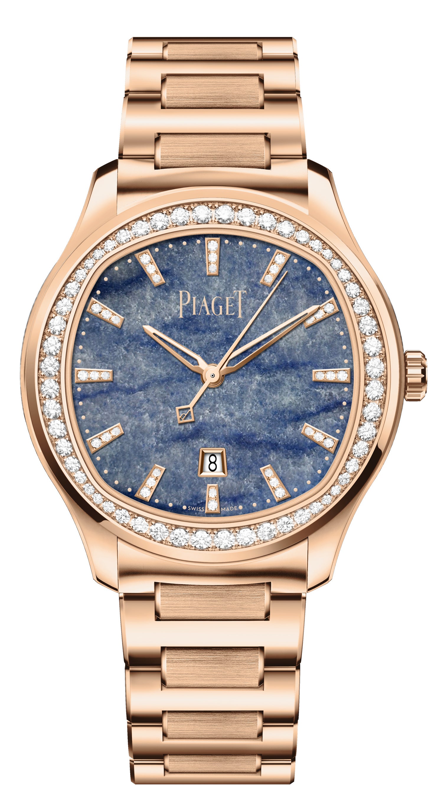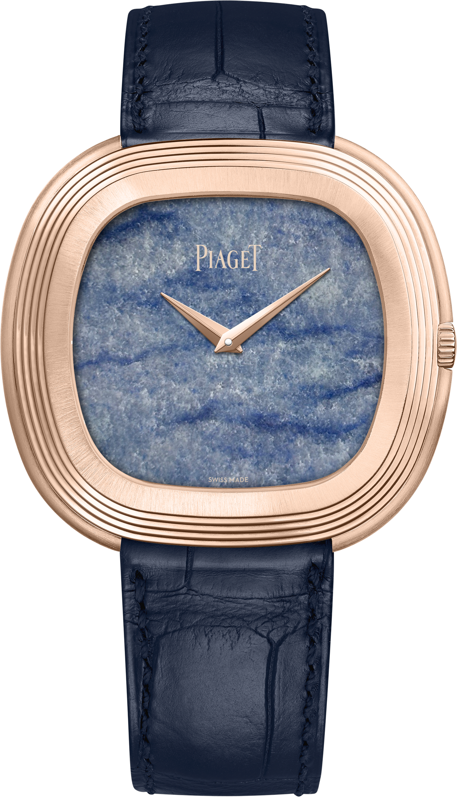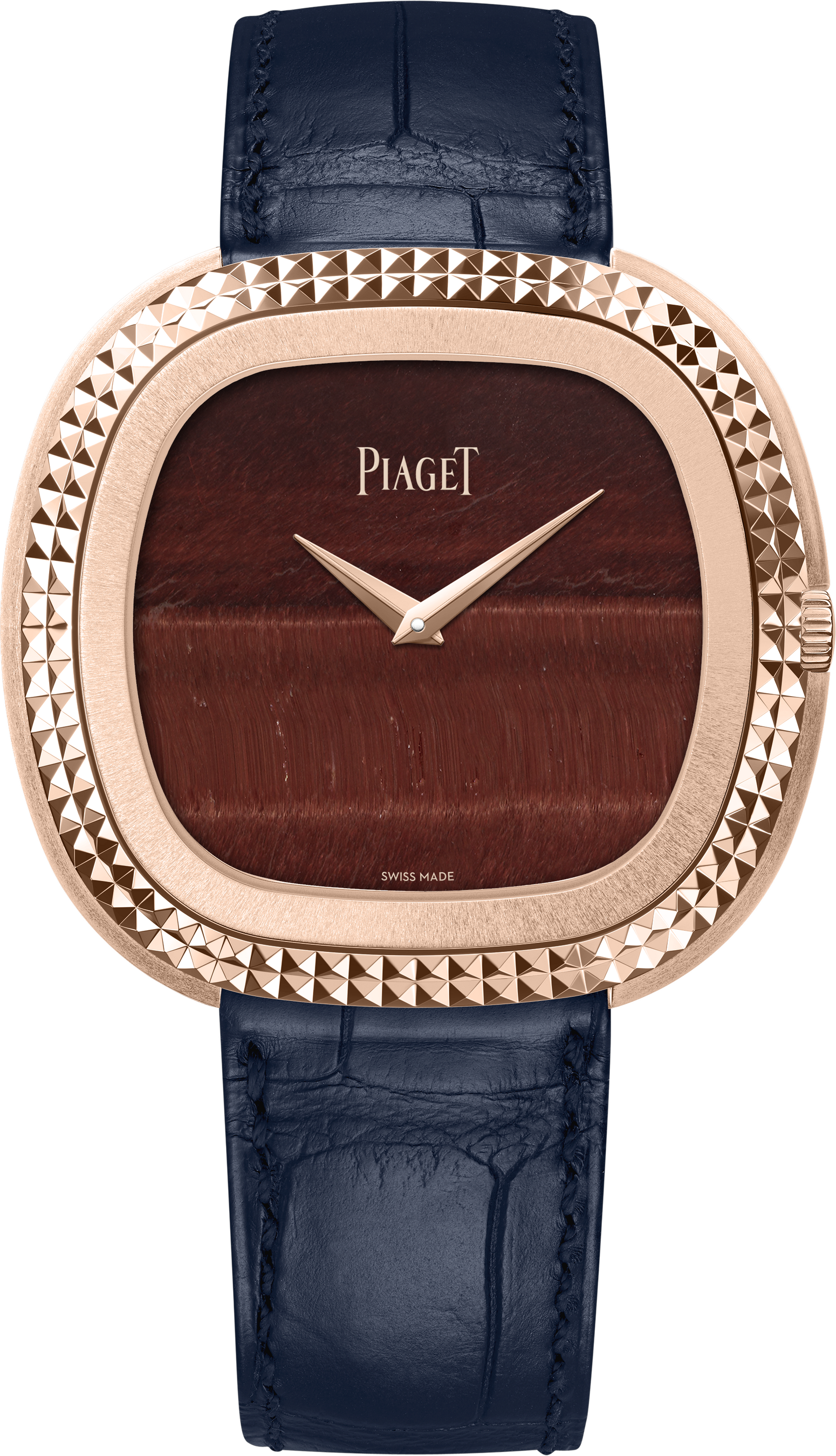 今日、ピアジェの色彩の芸術は、メゾンの歴史とつながる3つの印象的な色彩設計を通して輝きを放っています。ピアジェのシグネチャーカラーへのオマージュであるブルーの色合いが、ストラップ付きSixtie、ピンクゴールド製Piaget Polo 36mm、またはブルークォーツ文字盤を備えたAndy Warholウォッチを彩っています。一方、コレクターの間で人気の高いもうひとつのAndy Warholモデルに選んだ文字盤とケースは、温かみのある赤みがかったブラウンのブルズアイ、きらめくシャトヤンシー効果、スタッズの映えるクル・ド・パリケースです。ホワイトゴールドバージョンは、2024年に発売されました。