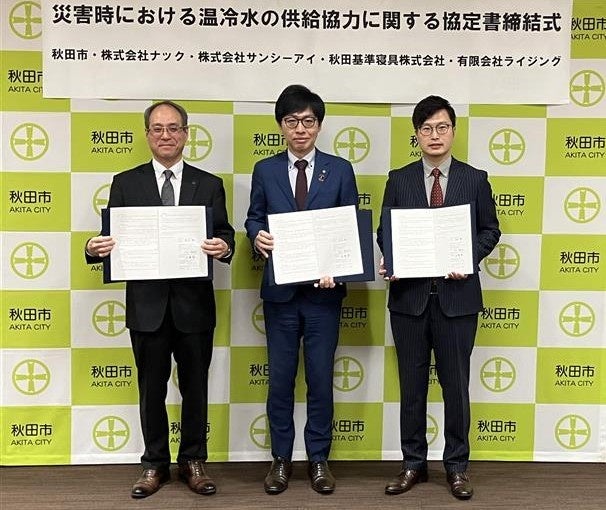 宅配水クリクラが、秋田県秋田市・㈱サンシーアイ・秋田基準寝具㈱・㈲ライジングと「災害時における温冷水の供給協力に関する協定」を締結