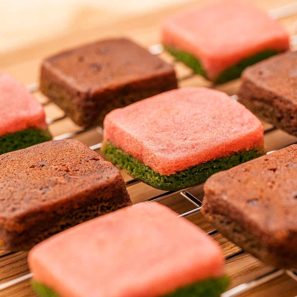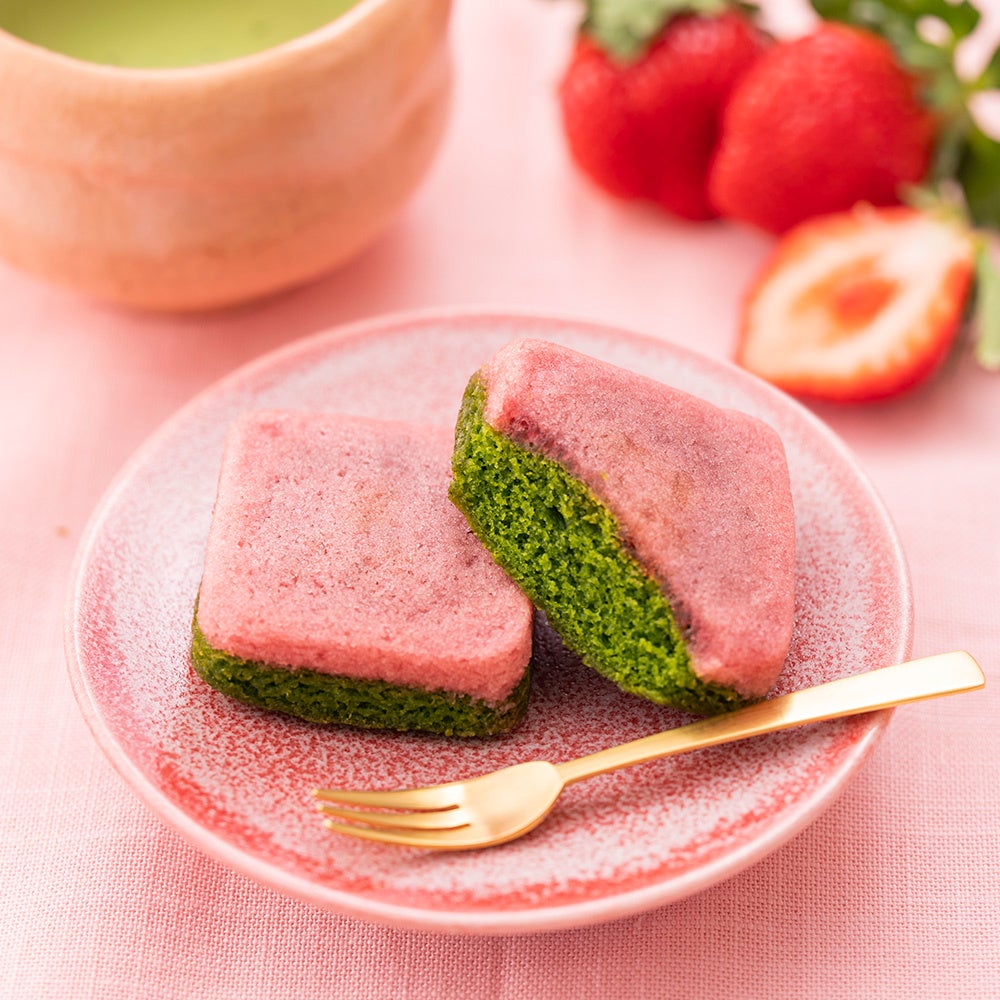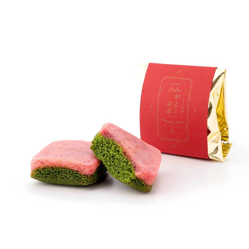 米粉で焼き上げたフィナンシェに求肥を合わせた“もっちり、しっとり”食感が人気の「がとーぶぶ フィナンシェ」は、2020年秋に「栗」が、2021年春には「さくら抹茶」の期間限定フレーバーを展開しており、今回は第三弾として、冬が旬の「いちご×抹茶」、香り高い「チョコ×ほうじ茶」を期間限定で販売いたします。
