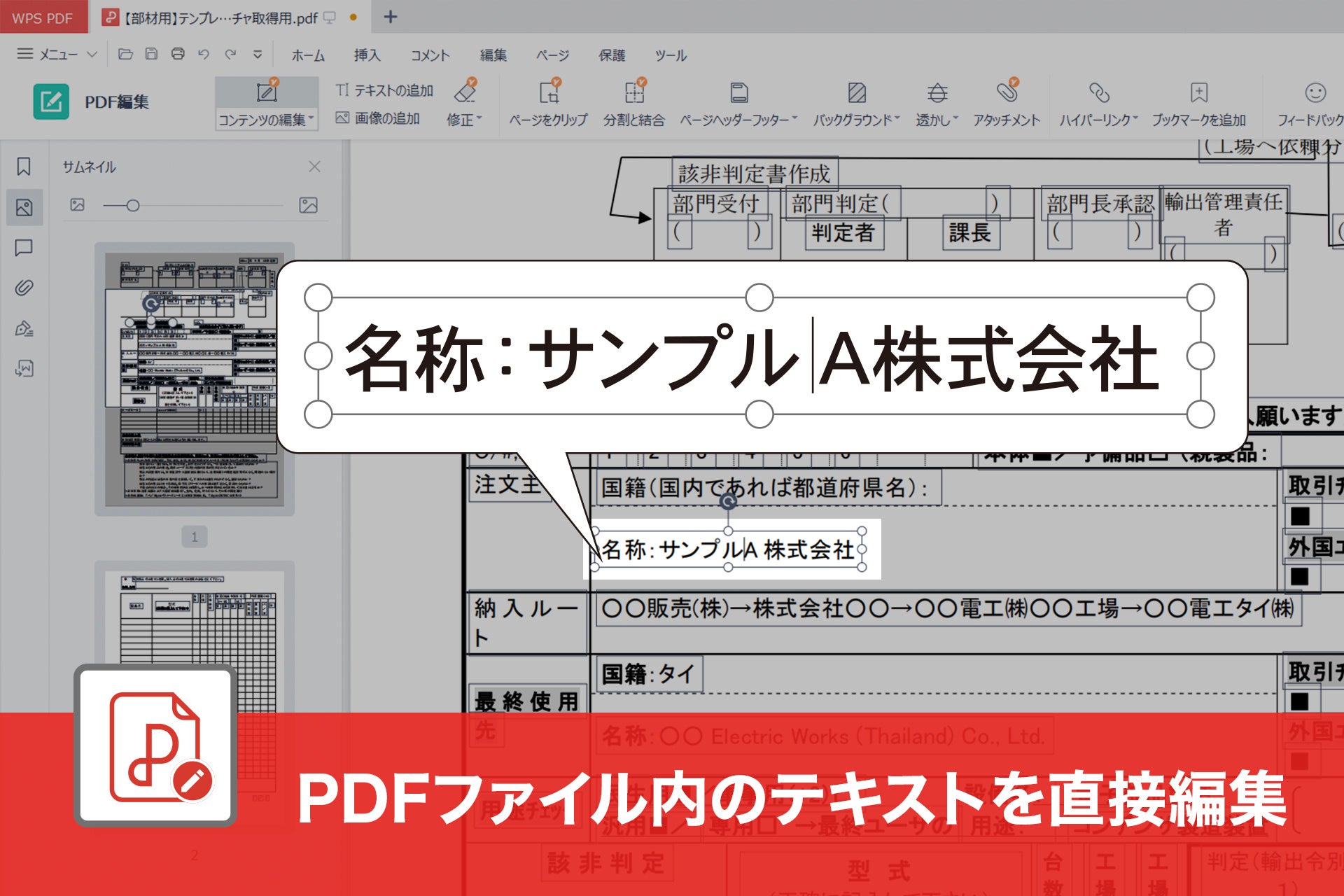 PDFファイル内のテキストを直接編集できます。フォントの種類やサイズ変更にも対応しています。
