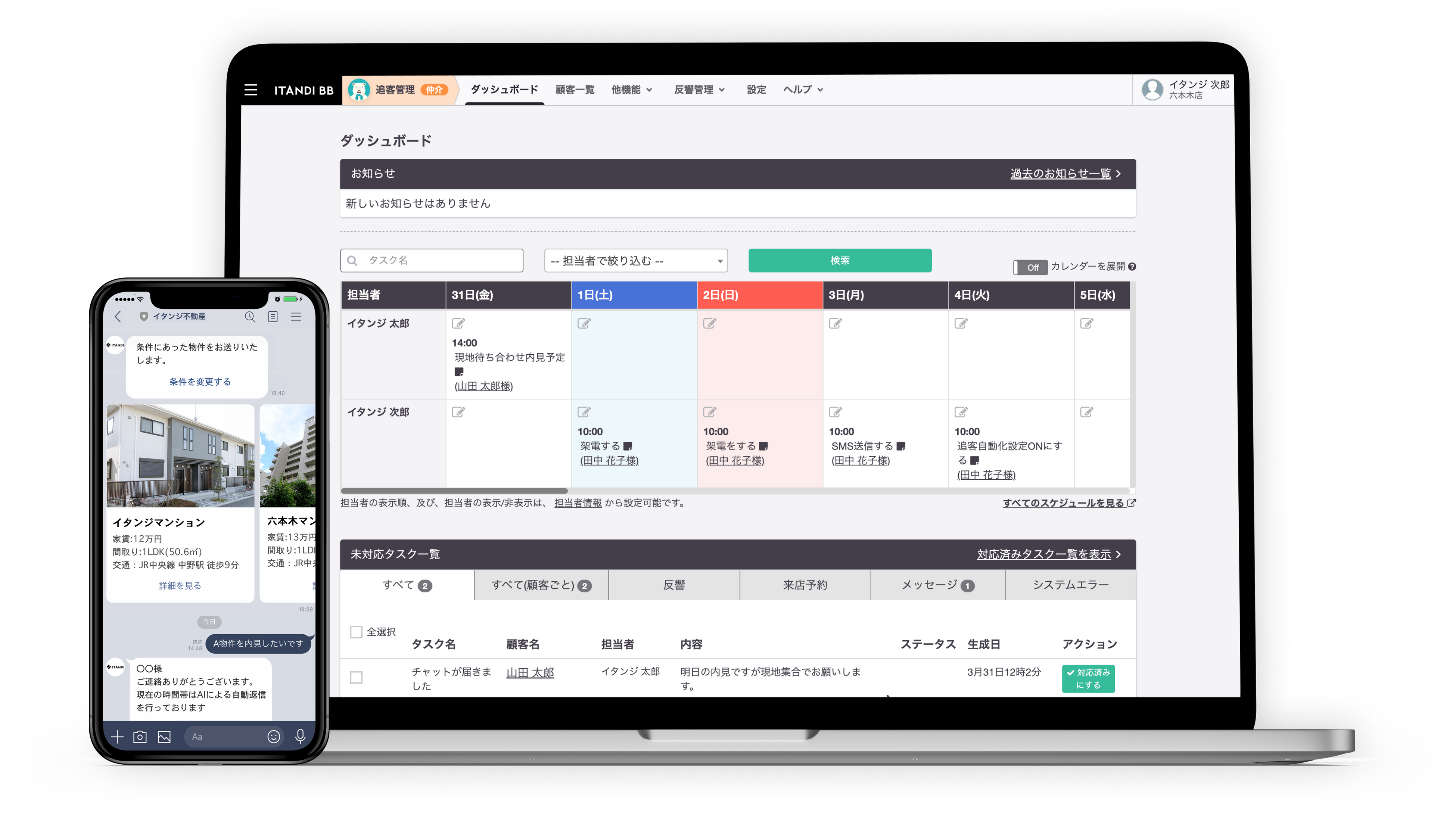 イタンジは、デジタル社会に対応した不動産業界のDXに向け、賃貸不動産会社の業務効率化推進を⽀援し、⼊居者にとって安全で利便性の⾼いサービスを提供してまいります。