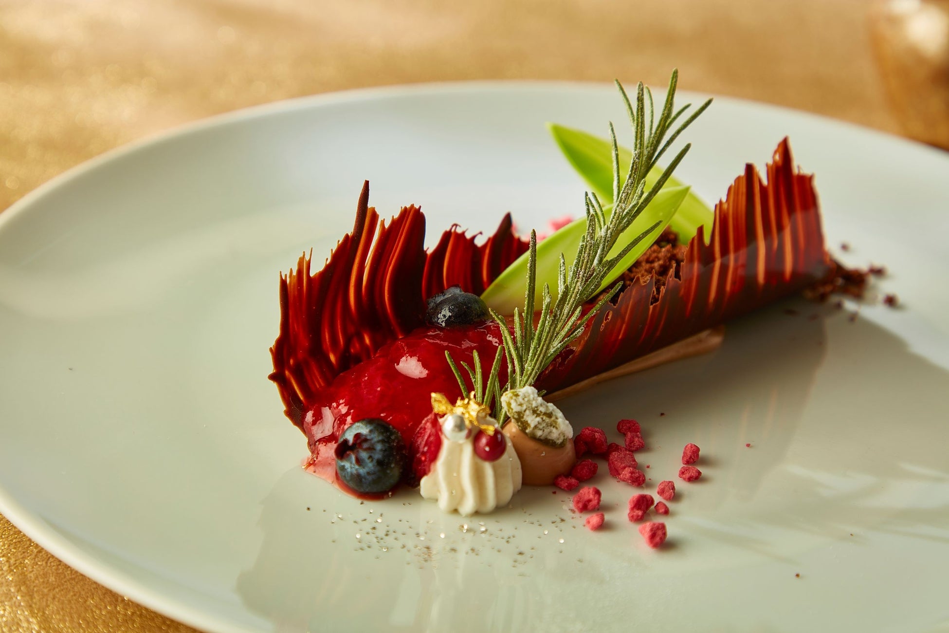 黒トリュフ香るソース」、デザートはパティシエがクリスマスの為に考案した特別デザートと