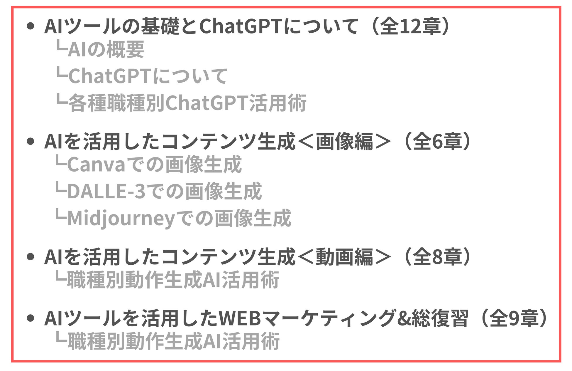 研修内容は、生成AIに関する基礎知識から、ChatGPTをはじめとした各ツールのコンテンツ生成などの活用法について解説しております。