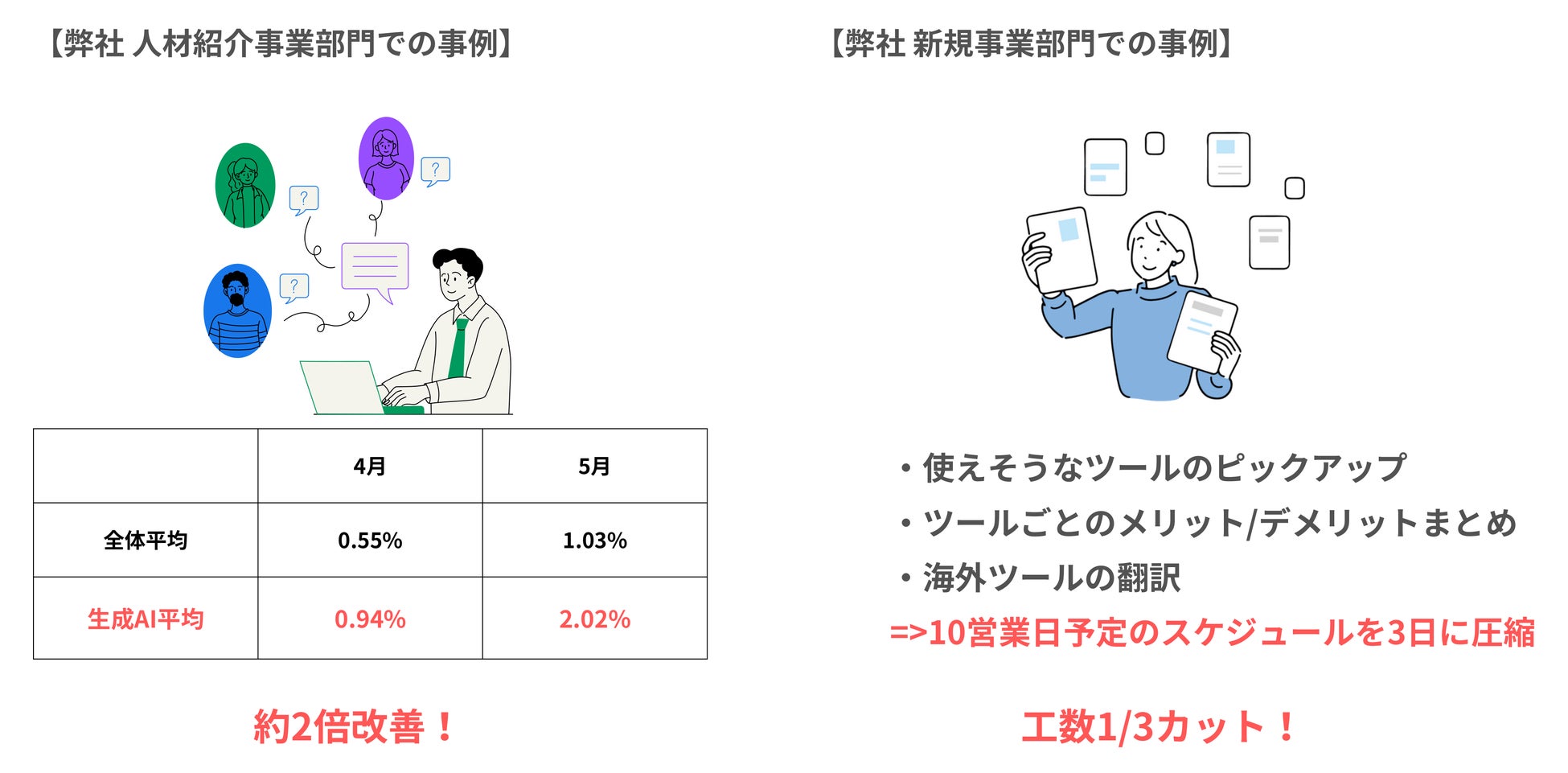 Branding Careerの親会社であるTWOSTONE&Sonsの各グループ会社にて、生成AIを用いて大幅な業務効率化を図っております。現場実績で得たノウハウも踏まえ、企業のリスキリングを後押しいたします。