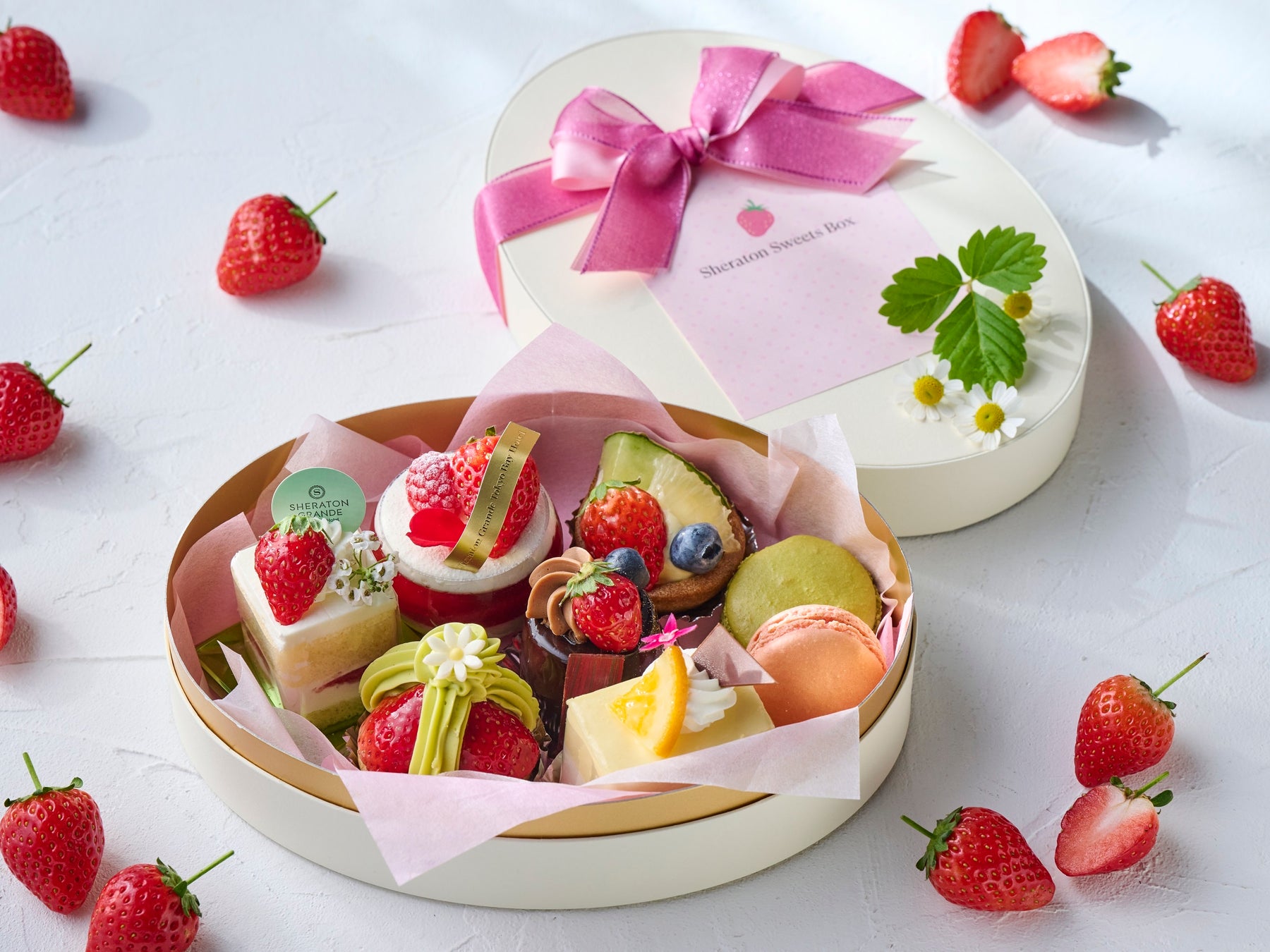 ボックスを開けた瞬間に8種類の色鮮やかなミニスイーツが広がる「#シェラトンスイーツボックス」。ミニサイズのマンスリースイーツを含む、バラエティ豊かなスイーツは、見た目も味も春の訪れにふさわしい華やかな一品です。