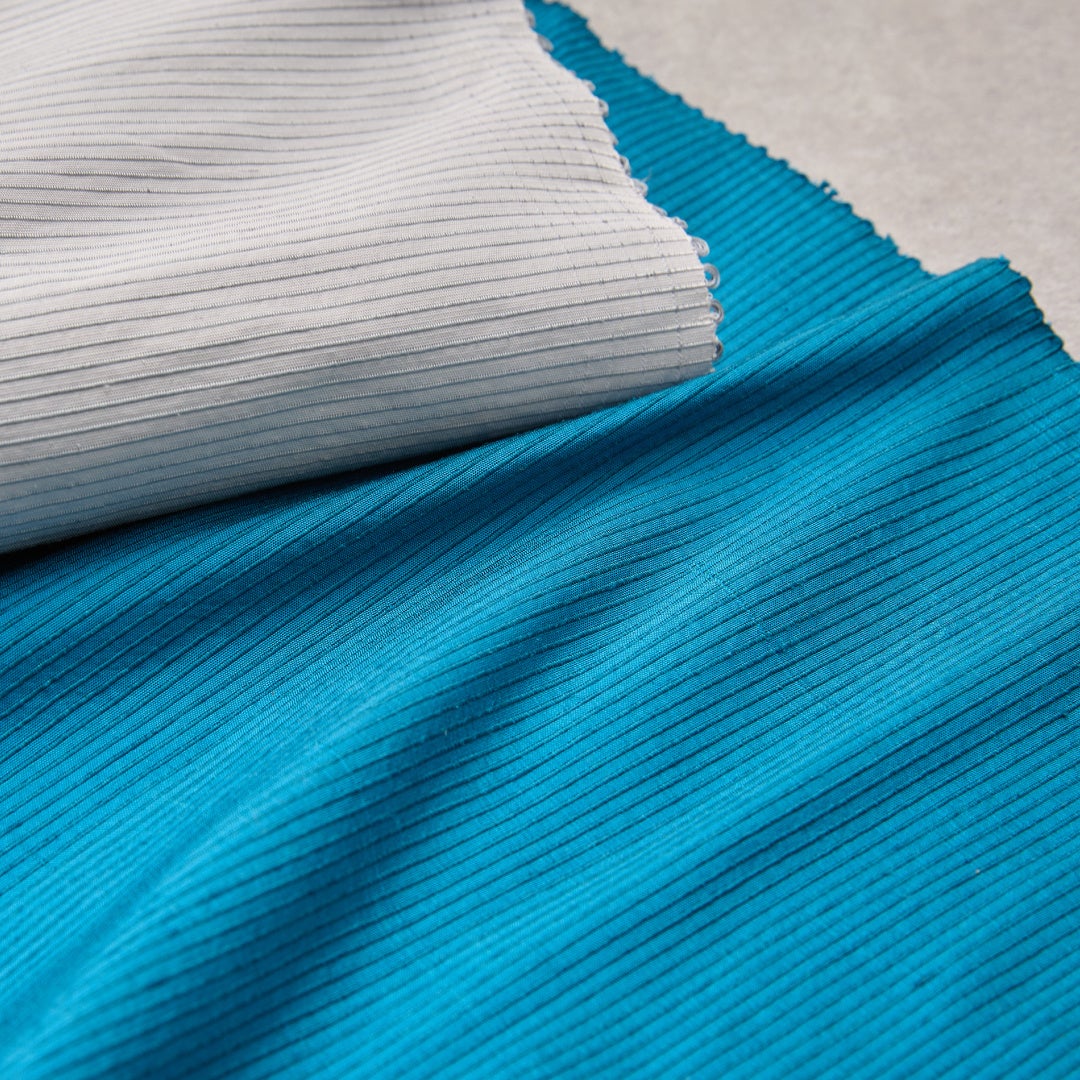 50以上の民族が暮らすラオスでは、女性が着用する巻きスカート「シン」をはじめ、手仕事による織物の文化が息づいています。素材の中心は天然素材のコットンとシルクで、色や柄は民族ごとに異なり、多民族国家としての文化の多様性を今でも受け継いでいます。光をまとうシルクならではの色合いと軽さ、そしてラオスの職人が誇る織りの技術を、私たちの暮らしの中で感じられますように――そんな願いを込めて、太さの異なる糸を用いた特徴的なストライプ模様で個性を出しながらも、あえて複雑な模様にはせず、コーディネートに馴染みやすい単色の生地に仕立てました。その軽やかで凹凸のある生地感は、人工的な素材では再現できない、シルクがもたらすゆたかさを感じさせてくれます。