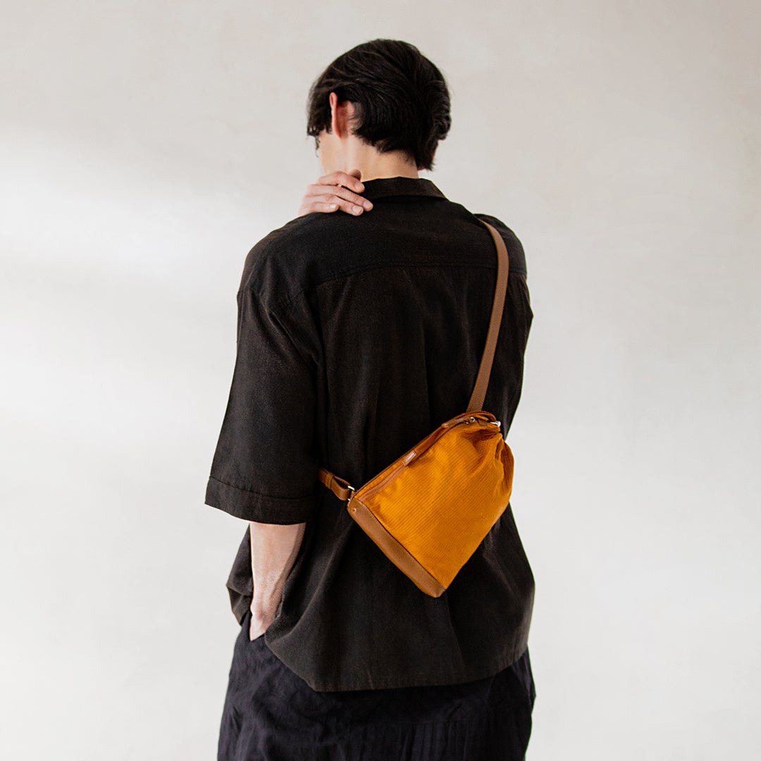 「ラオ シルク クロス バッグ」は、エレガントで高級感のあるシルクを、私たちの日常の中でアクティブに使うことを目指しています。本体はサイドにファスナーが付いた巾着型で、縦横どちらの向きでも荷物の出し入れがしやすい、使い勝手のよい構造です。いつでも身体に心地よくフィットするように、ショルダーベルトの付け根には回転金具を使用しています。レザーとの組み合わせにより耐久性を高め、特徴である軽さを活かした普段づかいに最適な仕上がりです。