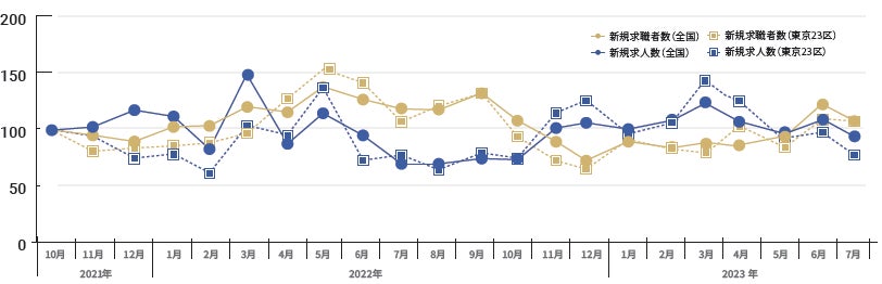 7月は、東京23区内の求人数が減少。正社員のニーズは継続して上昇