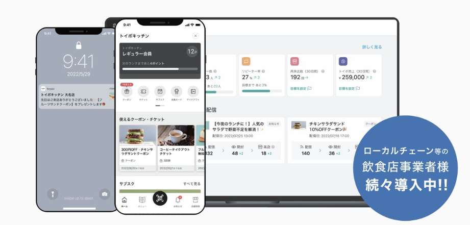 再来店・リピーターを増やす店舗集客に特化したミニアプリプラットフォーム。ローカルチェーン等の 飲食店事業者様 続々導入中です。
