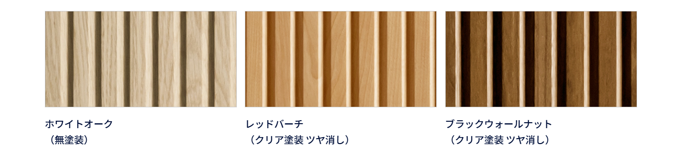 このたび追加された「V溝」は、不燃タイプで人気の形状とほぼ同形状とし、非不燃タイプとして全3色をラインアップしました。この形状は、曲面であってもスリット部まで木目が途切れることなく続き、継ぎ目のない美しい仕上がりを実現します。約6mmのスリットによる深い陰影が空間にダイナミックな表情と高級感をもたらし、腰壁やカウンター側面の仕上材として高い意匠性を発揮します。