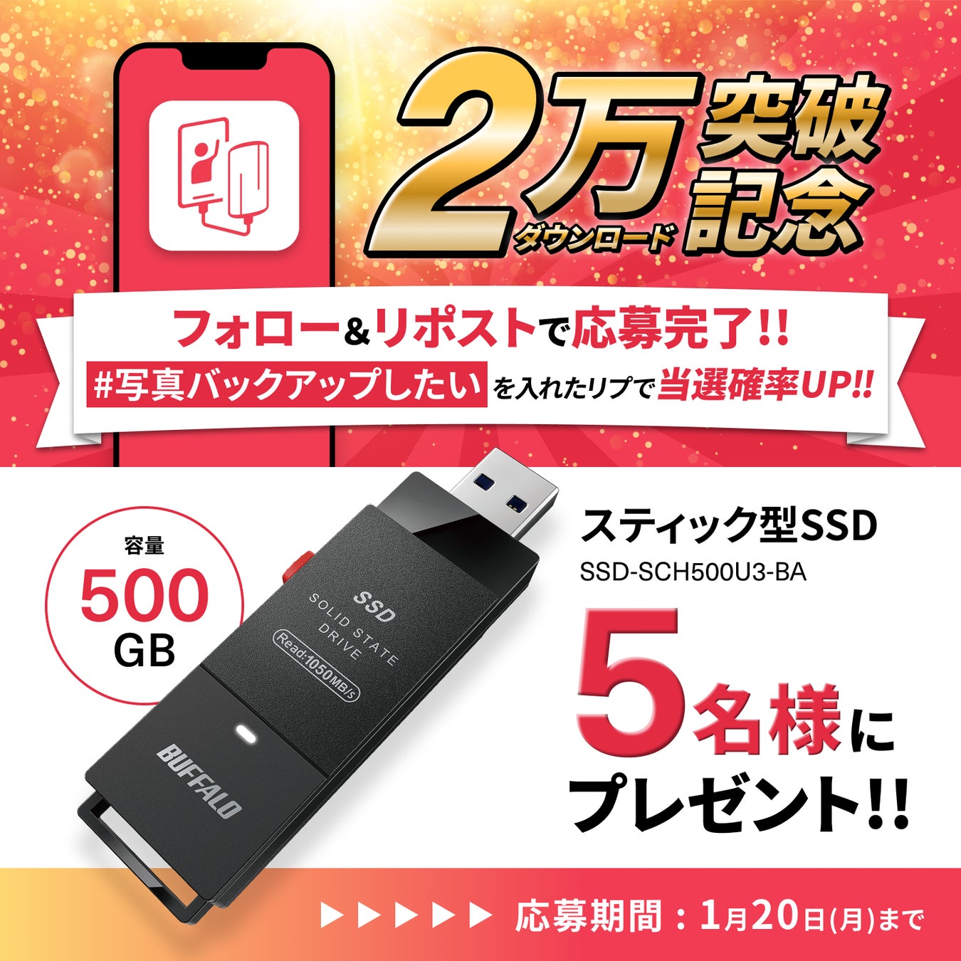 『「写真バックアップ」アプリ2万DL突破記念プレゼントキャンペーン』でアプリとセットですぐに使えるコンパクトなSSDが抽選で当たる!