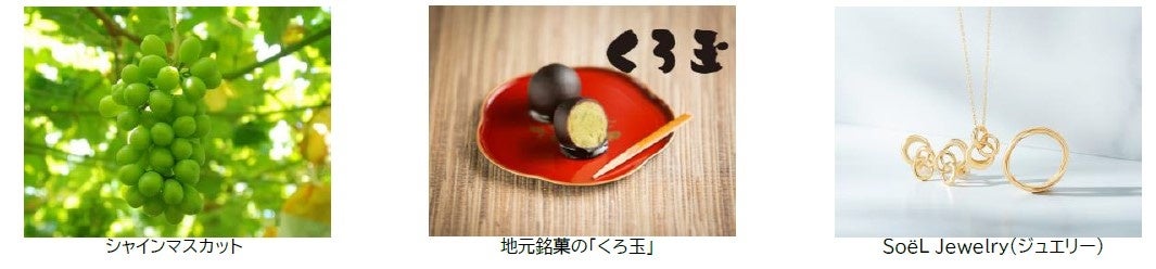 山梨県の甲府市では、四季折々で様々なフルーツが栽培され、秋は大ぶりの「シャインマスカット」が食べ頃をむかえます。また、戦国武将の武田信玄が生まれた地であり、日本遺産に認定された「御嶽昇仙峡(みたけしょうせんきょう)」など、数々の観光スポットが存在します。物産展には地元銘菓の「くろ玉」や宝石のまち甲府で作られたジュエリーなども出品し、甲府の様々な魅力を発信します。