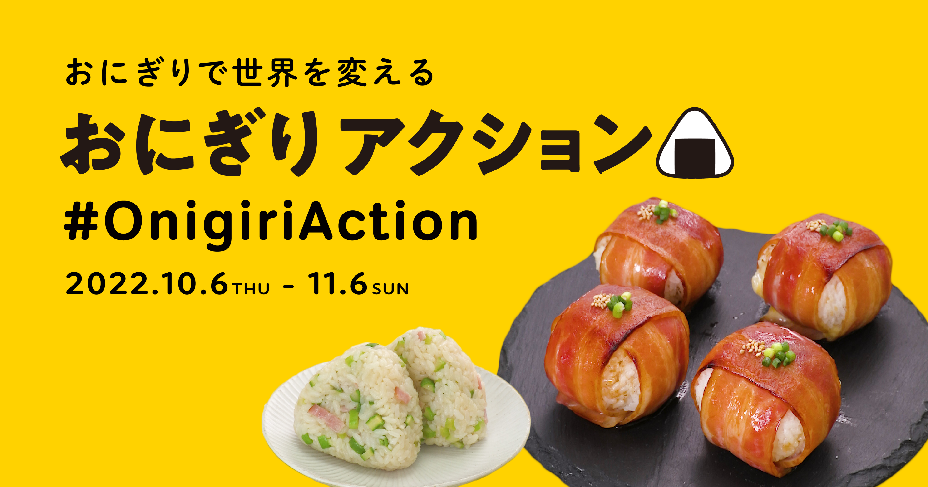 おにぎりにまつわる写真に#OnigiriAction を付けてSNSに投稿すると『TABLE FOR TWO』を通じてアフリカ・アジアの子どもたちに給食5食が届きます。