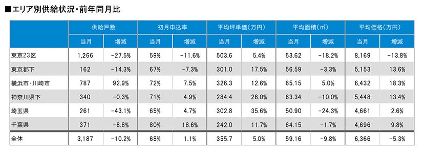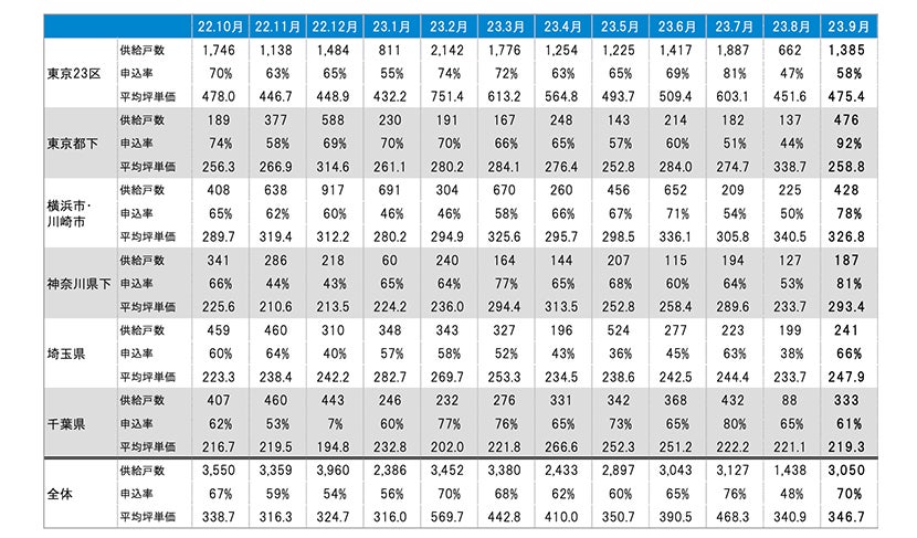 月例新築マンション動向発表~首都圏の新築マンション供給数 前年同月比10.3%減(2023年10月度分譲実績)2024年1月号~