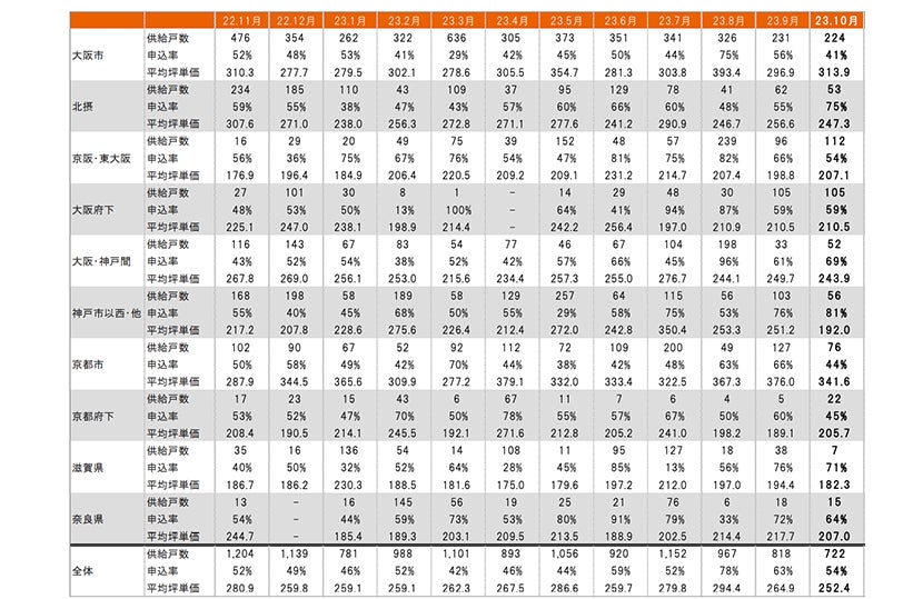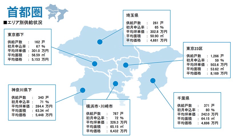 集計対象エリアは首都圏及び関西で、それぞれのエリア別相場情報、需給動向、着工件数等を集計しました。