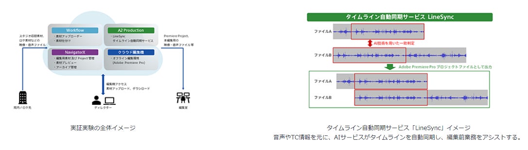実証実験では、クラウドを活用したコンテンツ管理機能の拡充やオフライン編集業務の作業効率化などに対する効果を測定します。オフライン編集業務では、ソニーマーケティングが開発したタイムライン自動同期サービス「LineSync(ラインシンク)」により編集作業の下準備を自動化するほか、番組制作の現場で負担となっている収録映像や音声ファイルの整理といった準備作業の工数削減効果が期待されています。本実証実験を通じて、TBSテレビ様が進めている、クラウド技術の活用による映像制作環境のワークフロー変革を支援していきます。