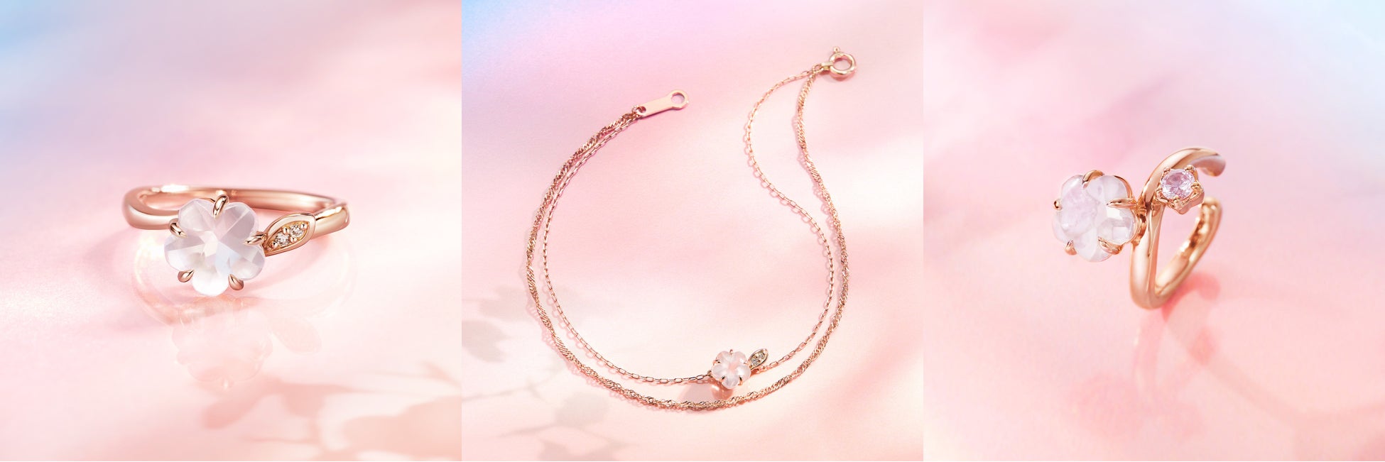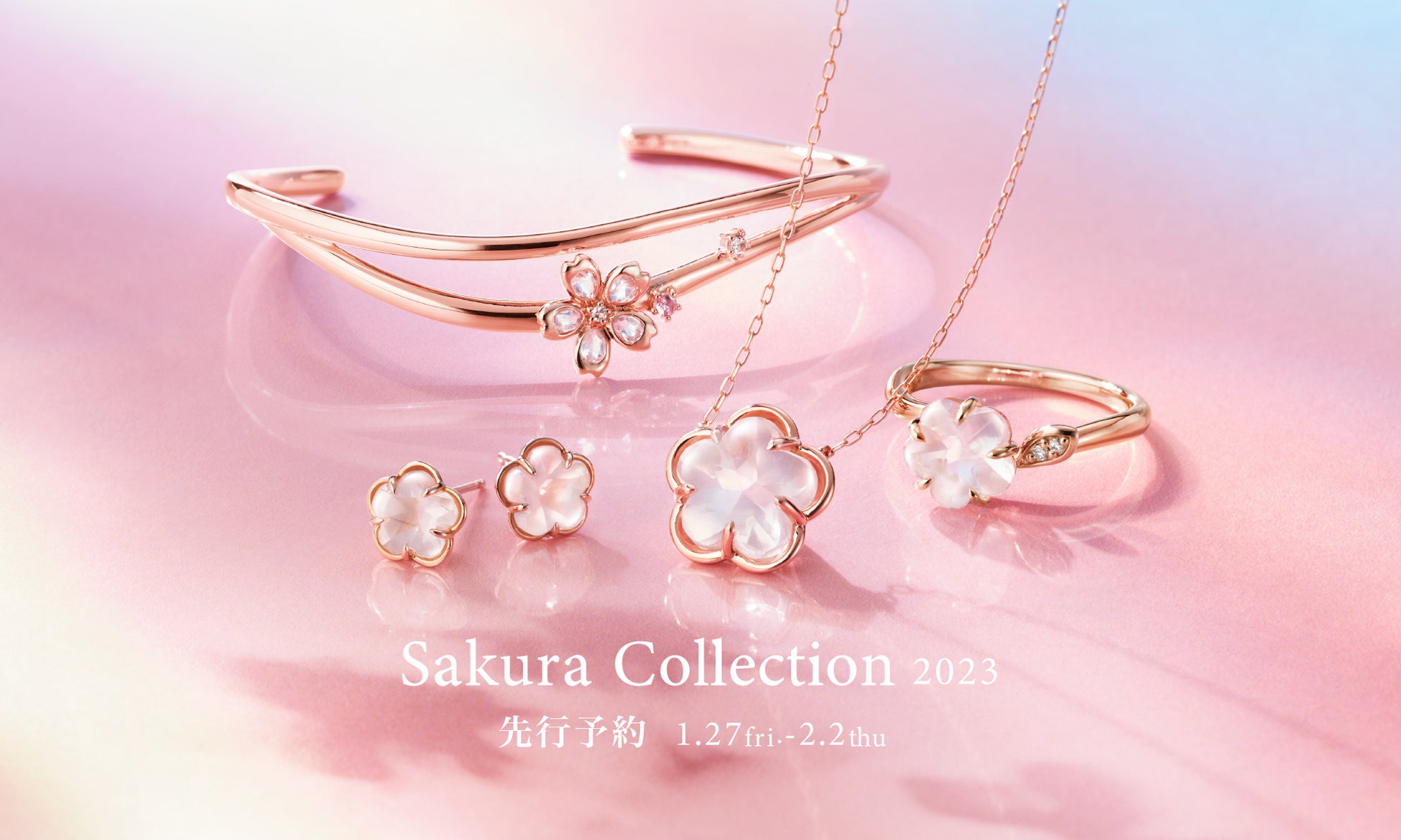 気持ちも晴れ渡るうららかな春。満開の桜ジュエリーで、一足早く春気分を楽しんで。