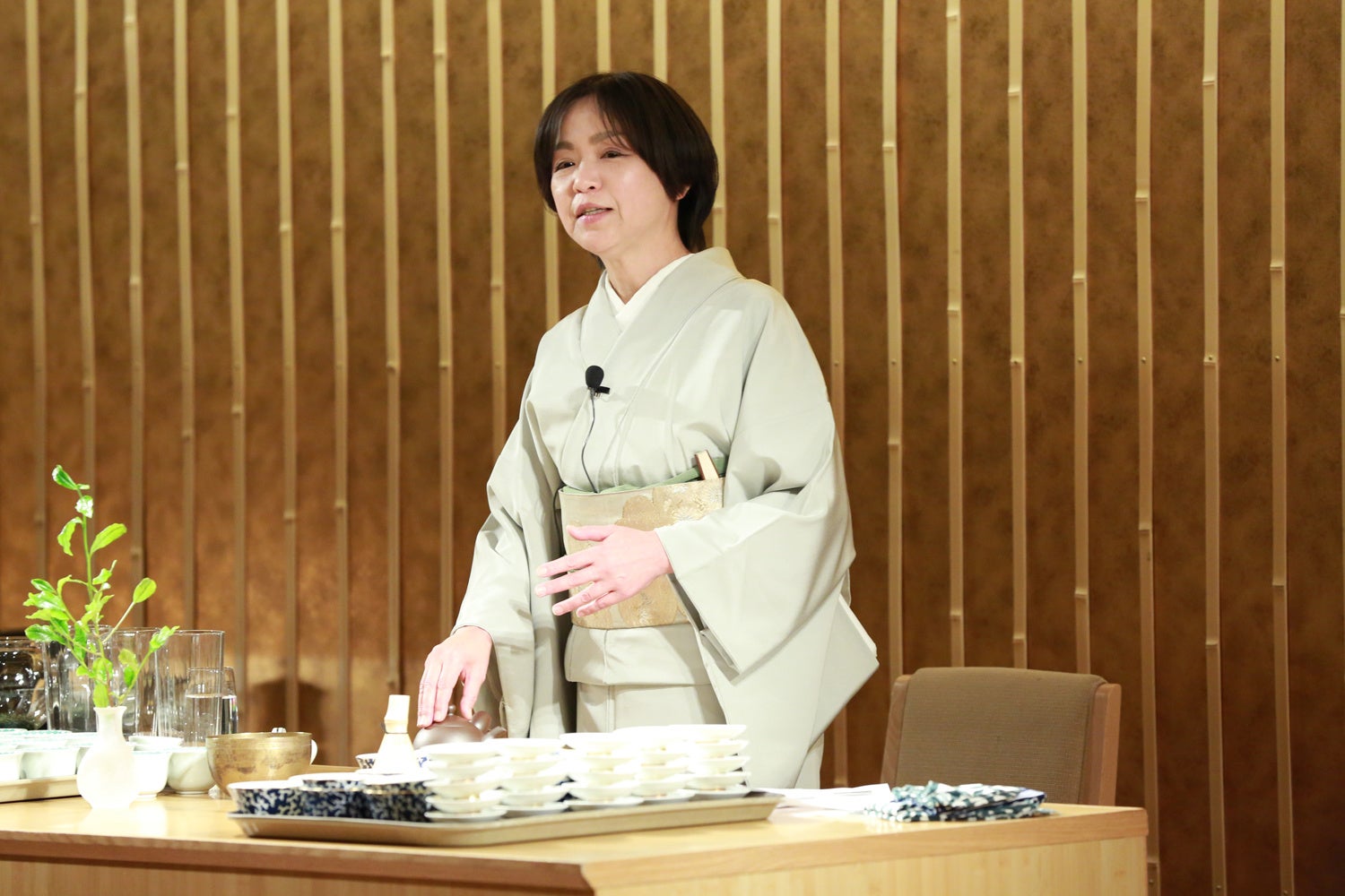 - 日本茶インストラクター岩井利恵(りえ)氏が、お茶の淹れ方をレクチャーします
