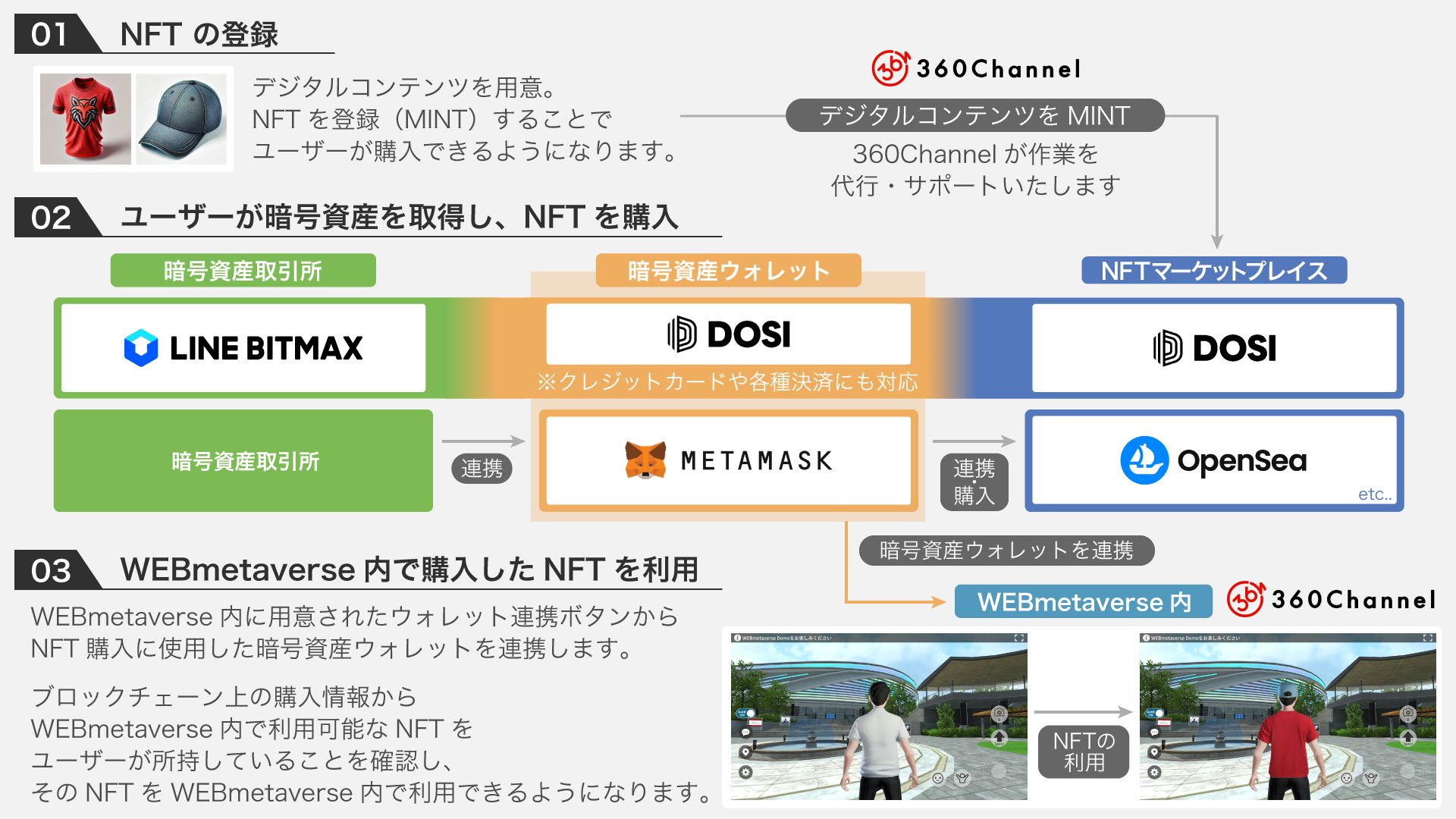 360ChannelのWEBmetaverse、Web3対応で新次元へ!複数の暗号資産ウォレットと連携し、マーケットプレイス上のNFTをメタバース空間で利用可能に