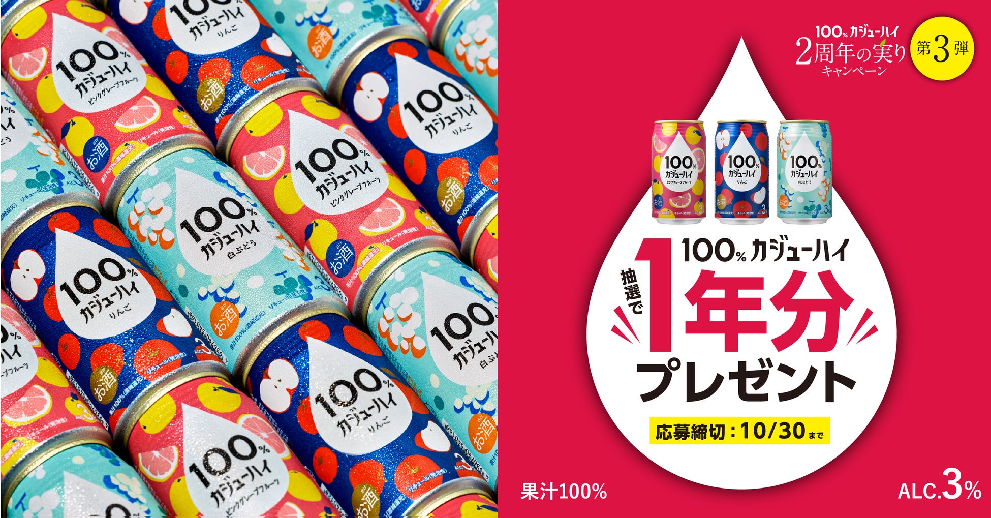 「100%カジューハイ」が最大1年分当たる!2周年SNSキャンペーンラストチャンス!第3弾がスタート