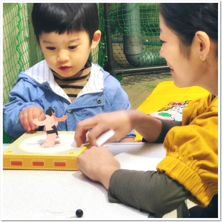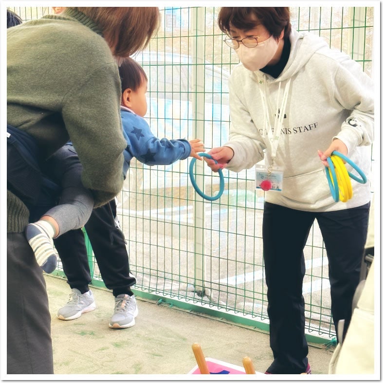 はじめてのミニテニス、ストラックアウト、うまい棒すくい、輪投げやこま回しなど、多くの家族連れでにぎわいました。