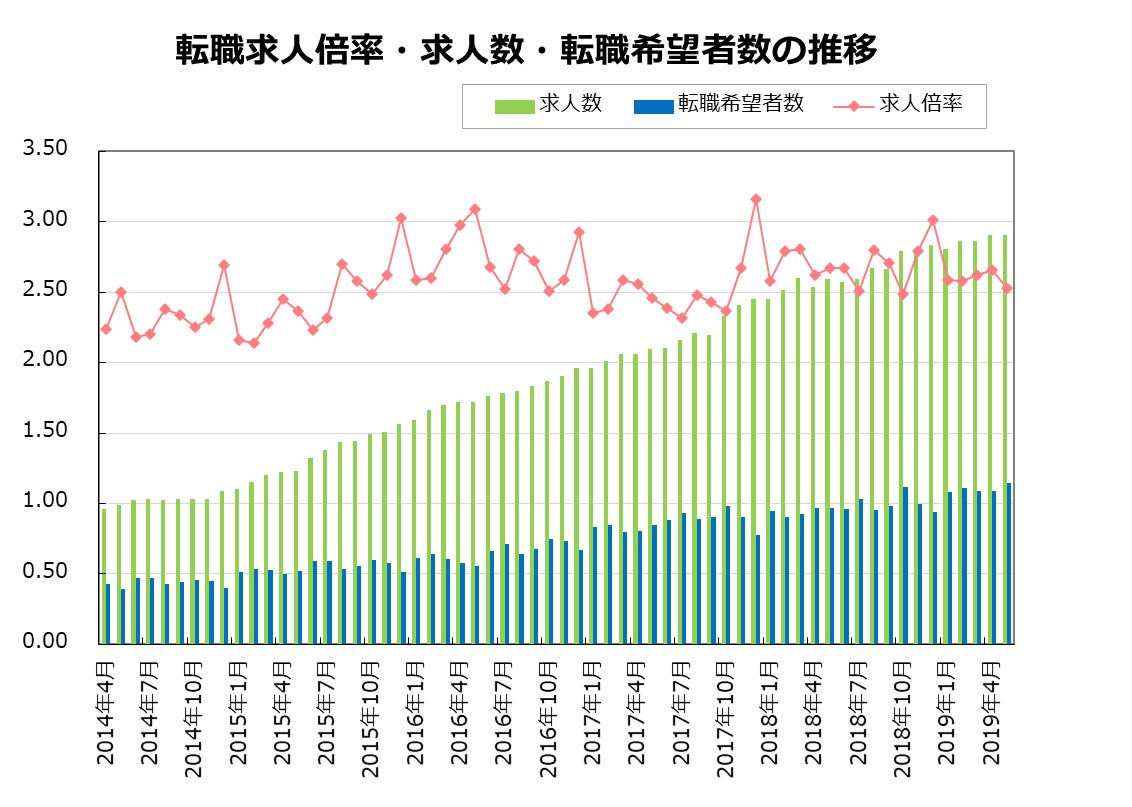 総合人材サービス、パーソルグループのパーソルキャリア株式会社(本社:東京都千代田区、代表取締役社長:峯尾太郎)が運営する転職サービス「doda(デューダ)」< https://doda.jp >は、2019年5月の転職求人倍率をまとめた「doda 転職求人倍率レポート」を発表しましたのでお知らせします。
