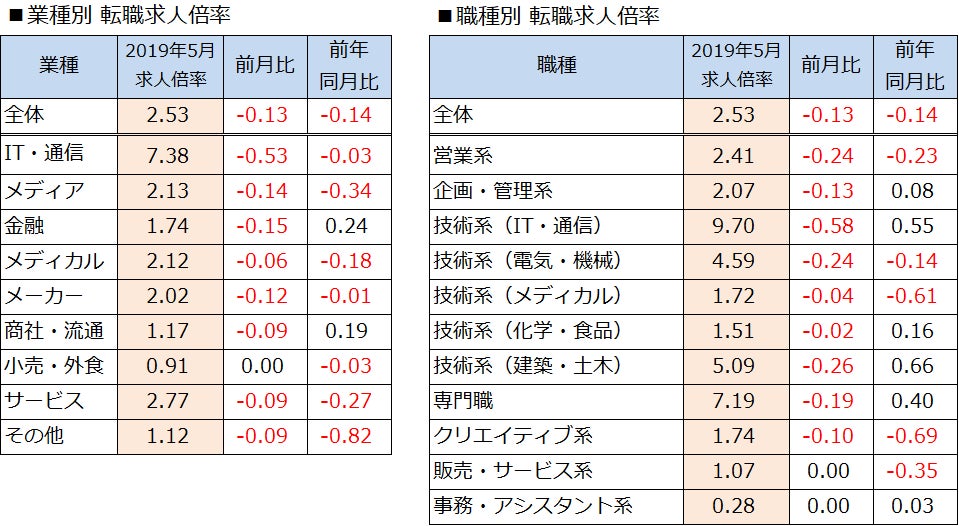 転職サービス「doda(デューダ)」 2019年5月転職求人倍率2.53倍(前月比-0.13ポイント)